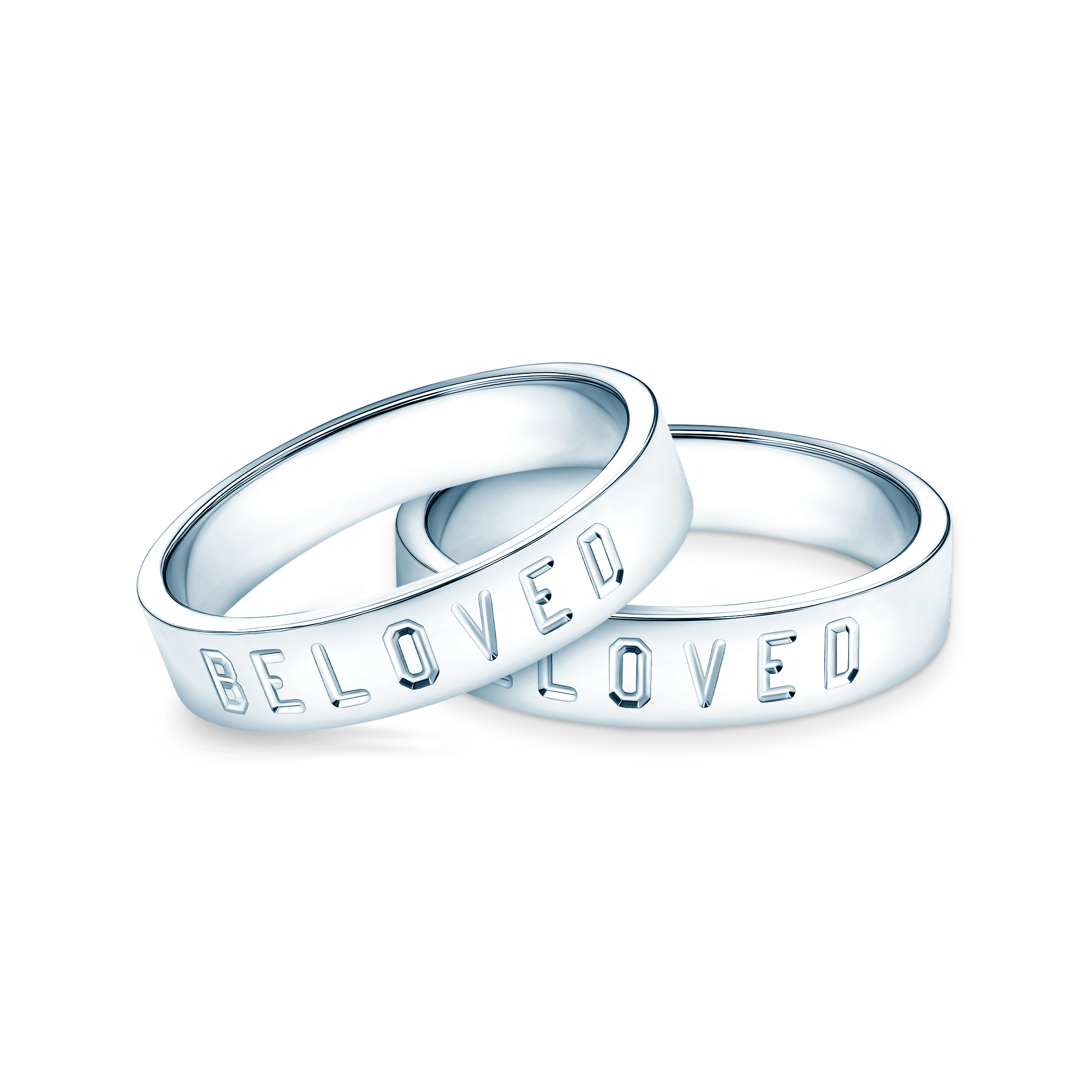 Obrączki partnerskie BeLoved® wykonane z białego złota (próba 585) o szerokości 4mm, polerowane, obrączki te posiadają grawer BELOVED - na życzenie klienta grawerujemy dowolną sentencję.