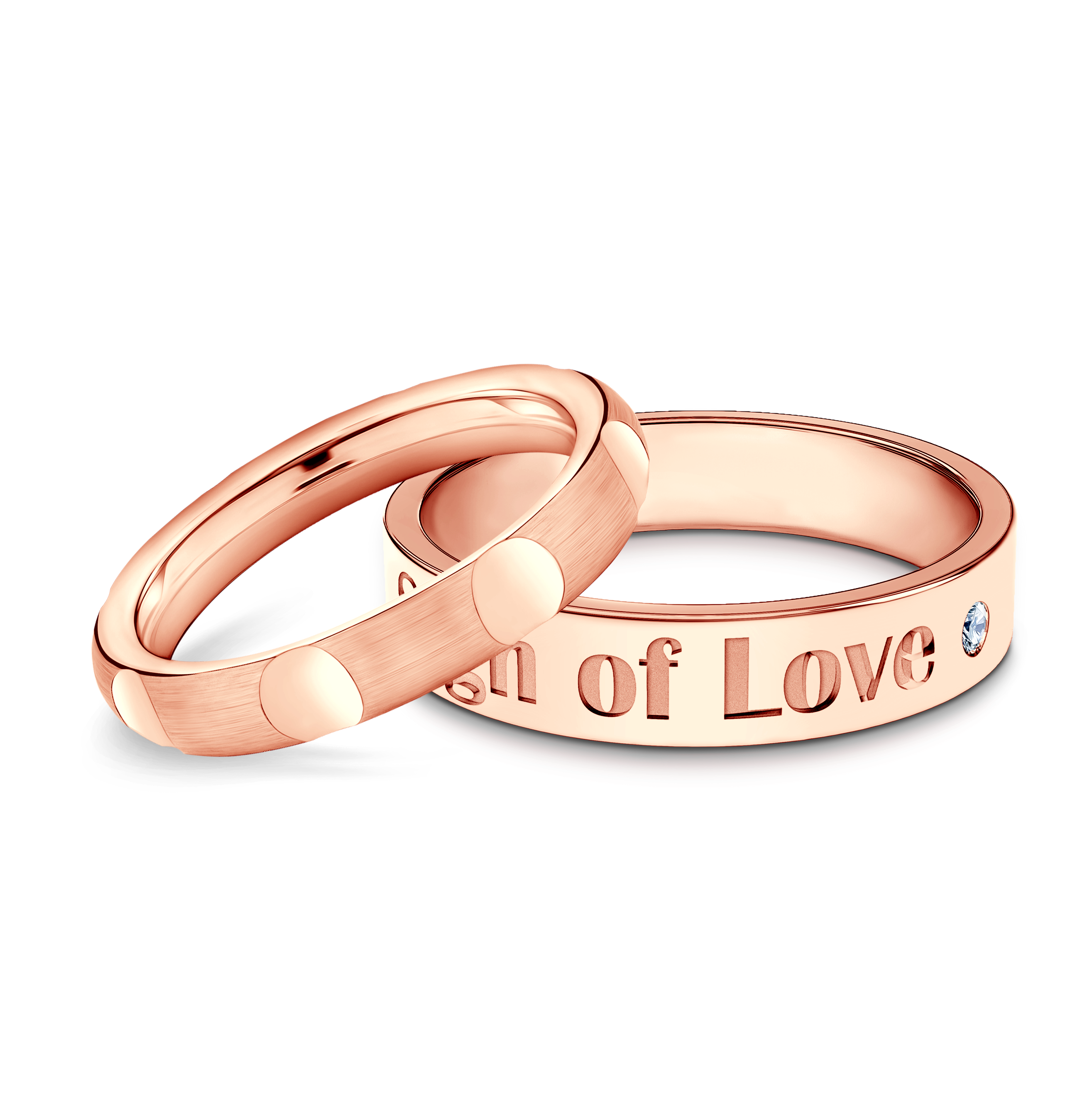 Obrączki partnerskie Sign of Love® wykonane z różowego złota (próba 585) o szerokości 3,5mm, matowa i 4mm, polerowana, diament 0,01ct SI2/H, obrączka ta posiada grawer Sign of Love - na życzenie klienta grawerujemy dowolną sentencję.