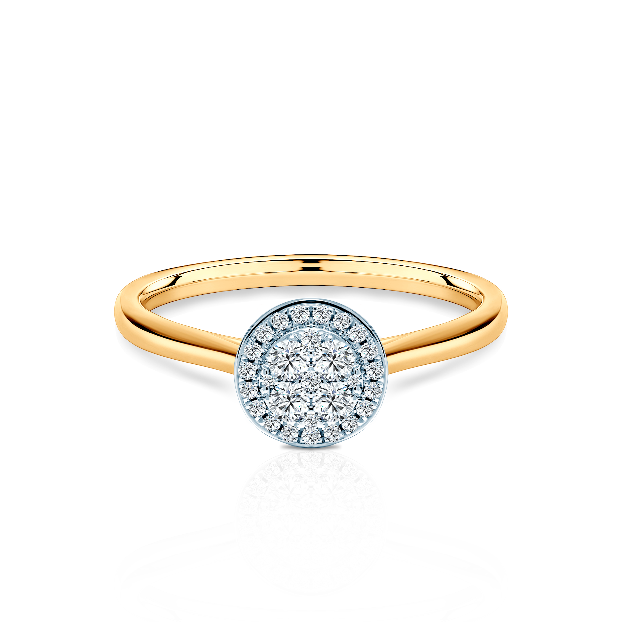 Pierścionek zaręczynowy z diamentami o czystości i barwie SI2/H. Wykonany z 14-karatowego złota (próba 585).