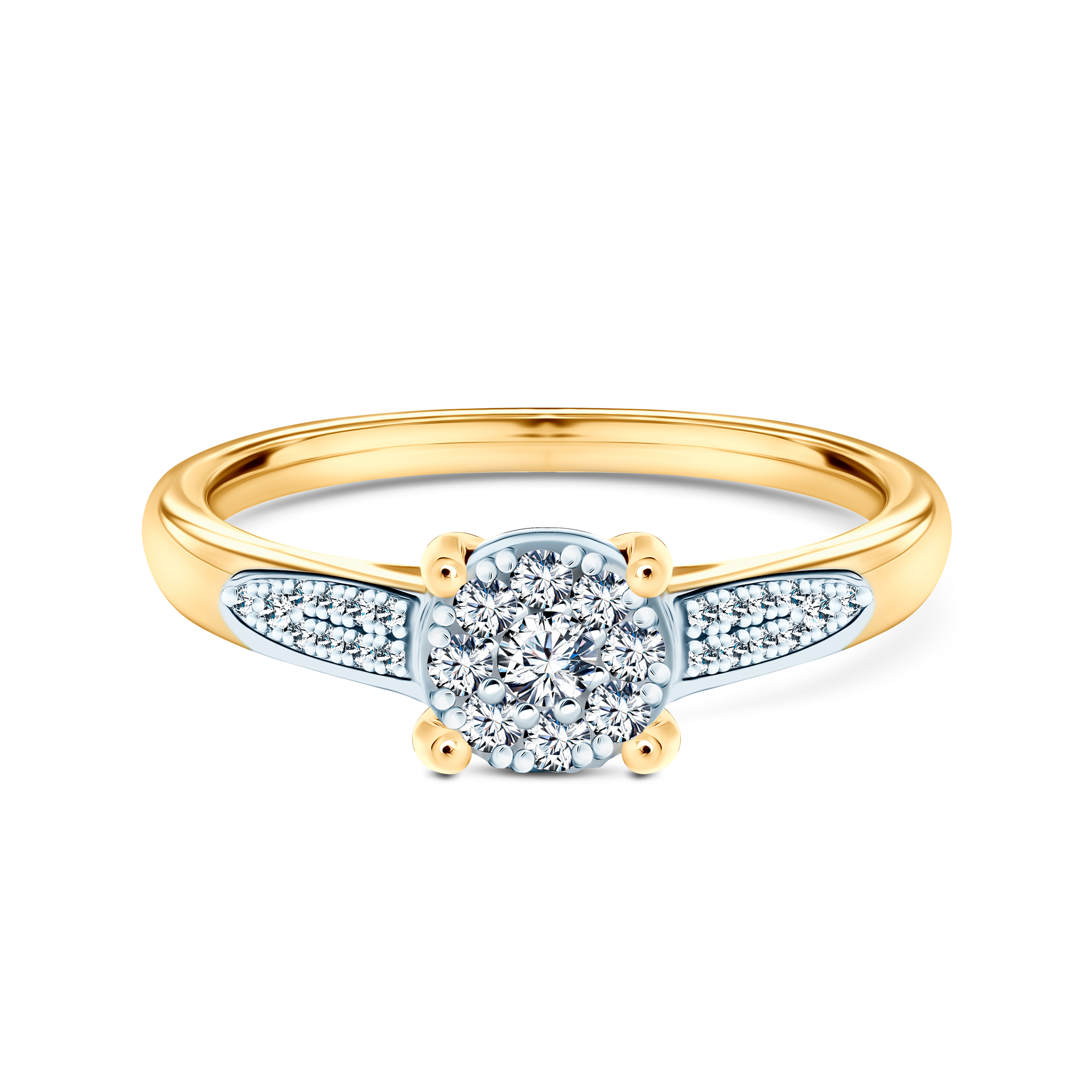Pierścionek zaręczynowy z diamentami o czystości i barwie SI2/H. Wykonany z 14-karatowego złota (próba 585).