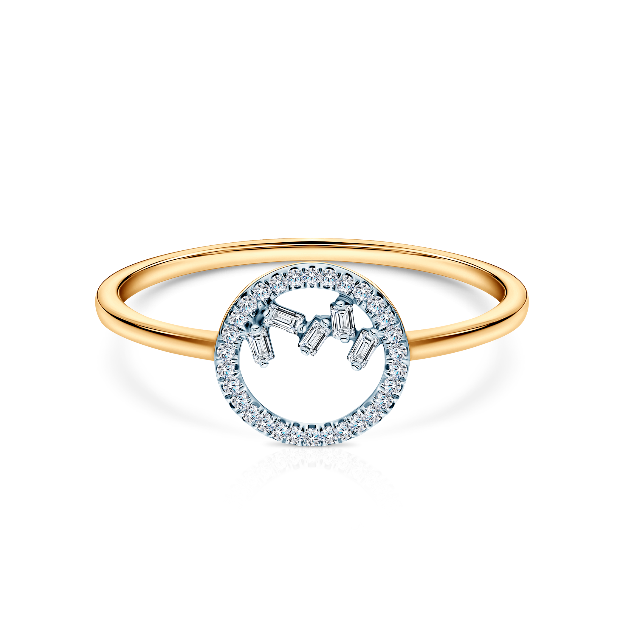 Pierścionek zaręczynowy z diamentami o czystości SI2. Wykonany z 14-karatowego złota (próba 585).