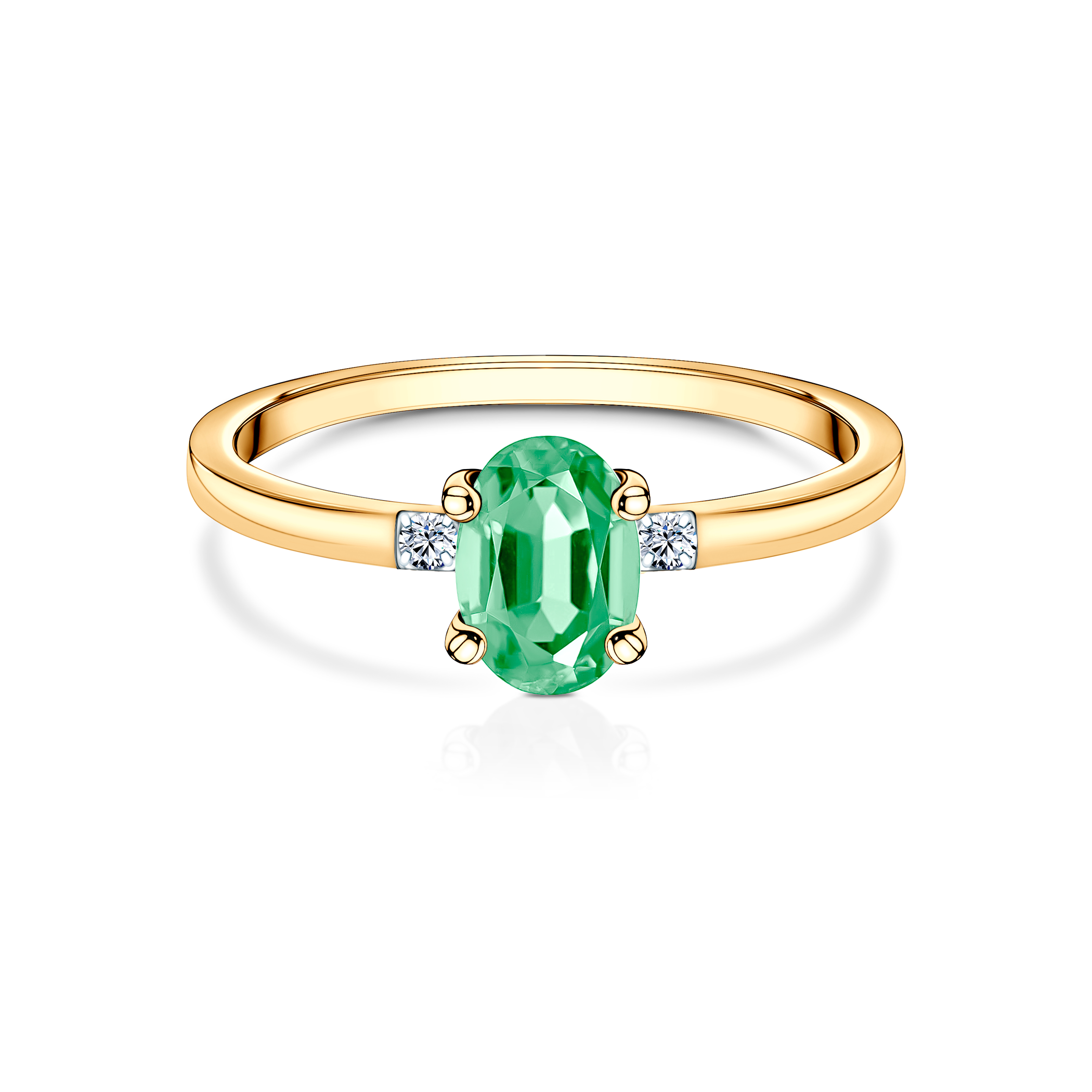 Pierścionek zaręczynowy ze szmaragdem i diamentami o czystości SI2. Wykonany z żółtego złota (próba 585).