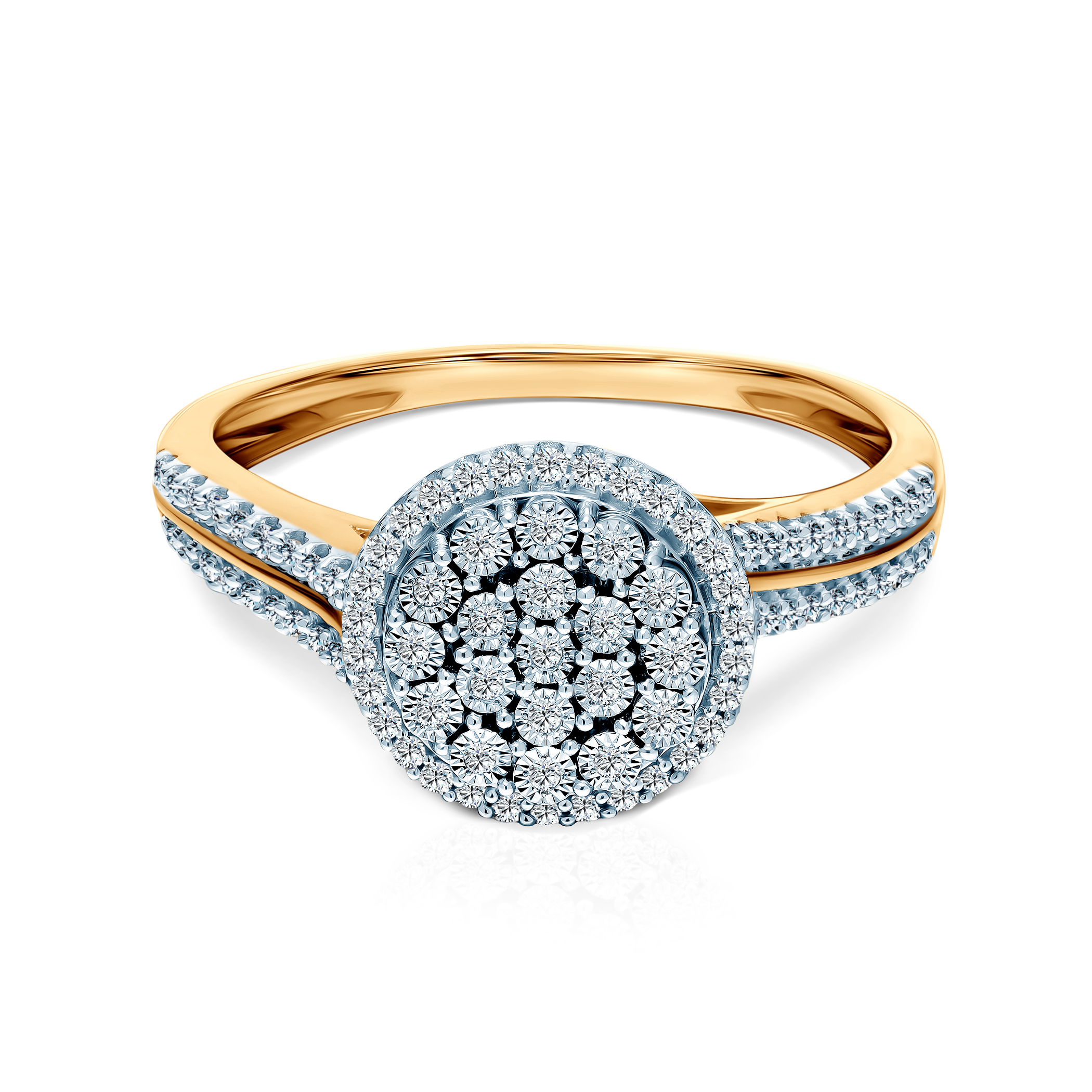 Pierścionek zaręczynowy z diamentami o czystości SI2 . Wykonany z żółtego złota (próba 585).