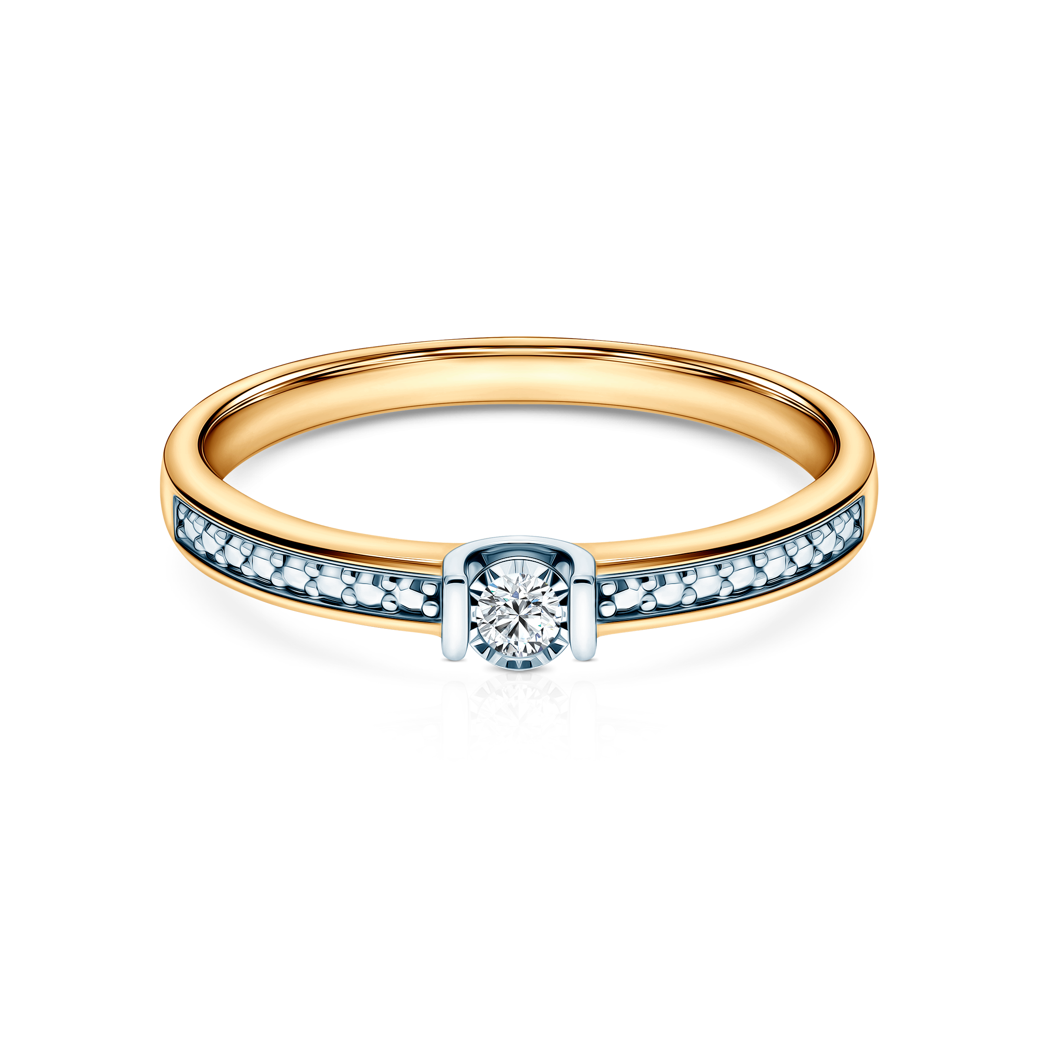 Pierścionek zaręczynowy z diamentami o czystości SI2 . Wykonany z żółtego złota (próba 585).