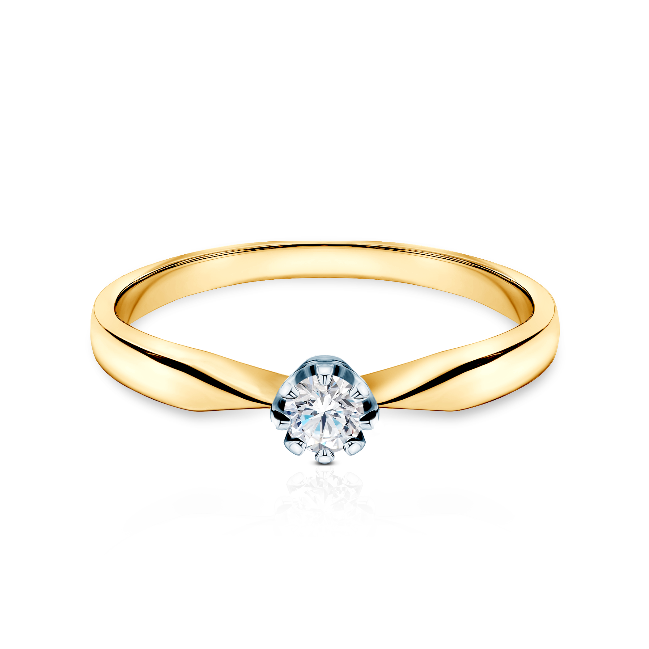 Pierścionek zaręczynowy z diamentem laboratoryjnym 0,15 ct o szlifie brylantowym wysokiej czystości VS/F, wykonany z 14-karatowego dwukolorowego złota (próba 0,585).