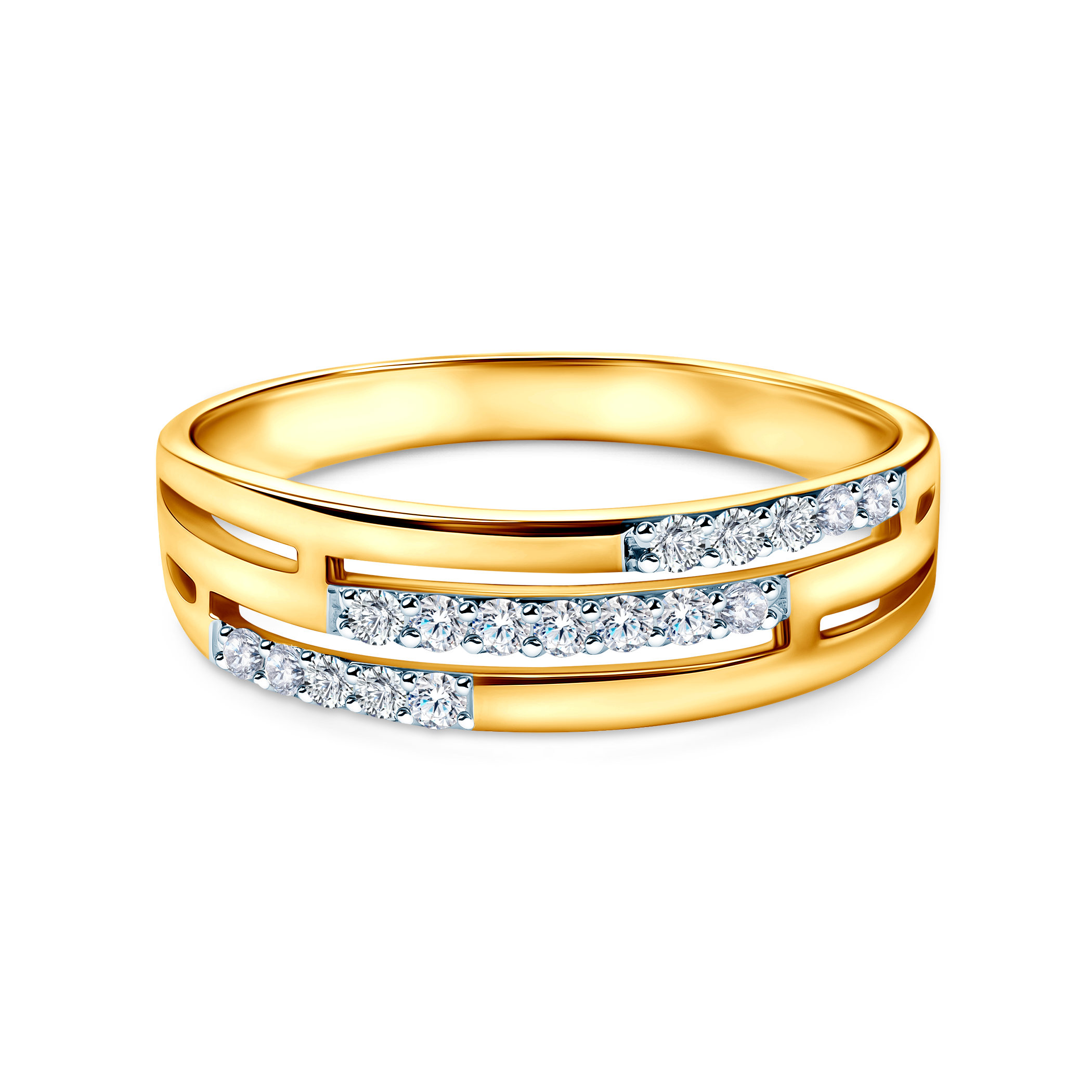 Pierścionek zaręczynowy z diamentami o łącznej masie 0,15ct w szlifie brylantowym wysokiej czystości SI2/H, wykonany z 14-karatowego żółtego złota (próba 0,585).