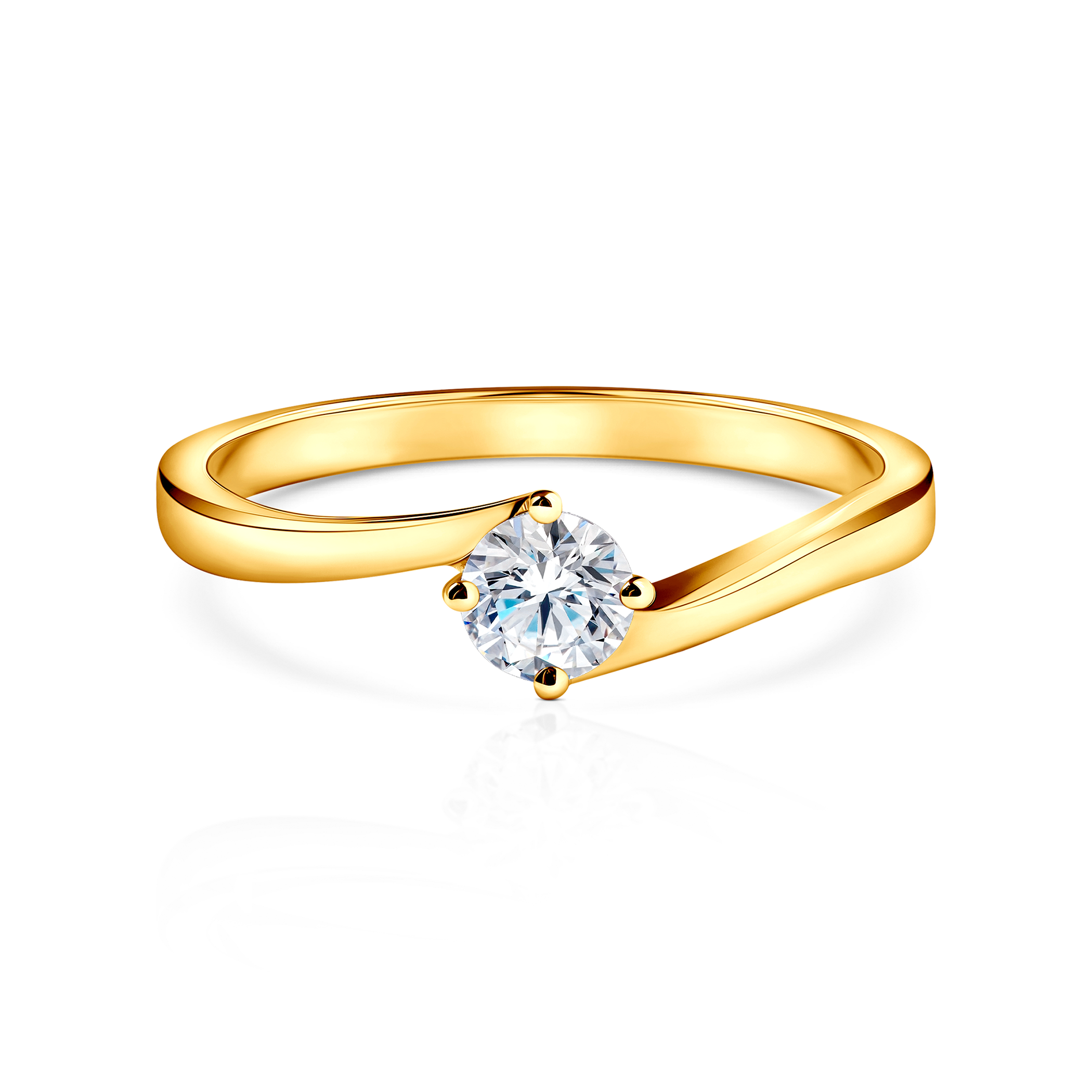Pierścionek zaręczynowy z diamentem głównym 0,2ct w szlifie brylantowym wysokiej czystości SI2/H, wykonany z 14-karatowego żółtego złota (próba 0,585).