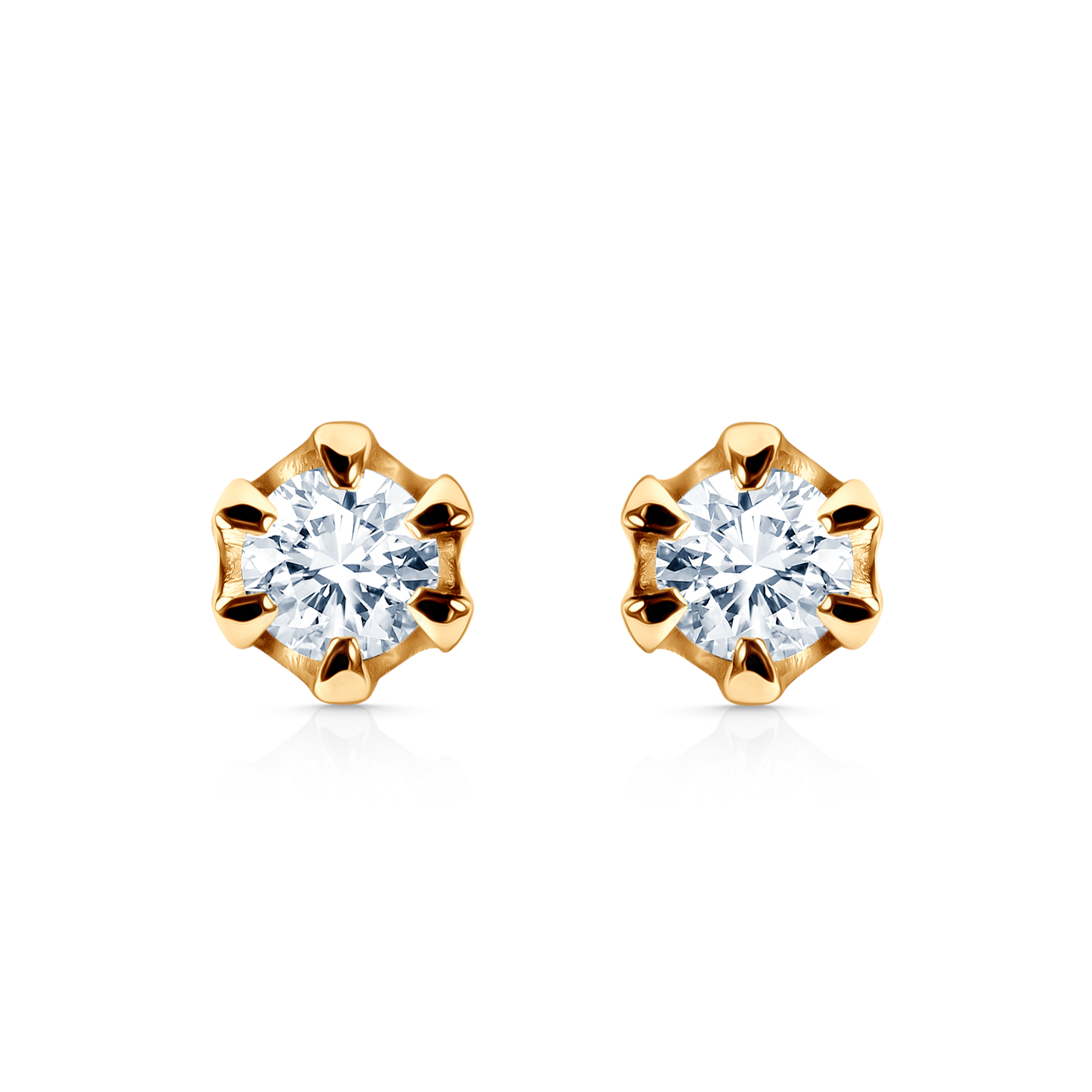 Kolczyki Savicki wykonane z żółtego złota (próba 585). W kolczykach zostały osadzone 2 diamenty o łącznej masie 0,2 ct.
