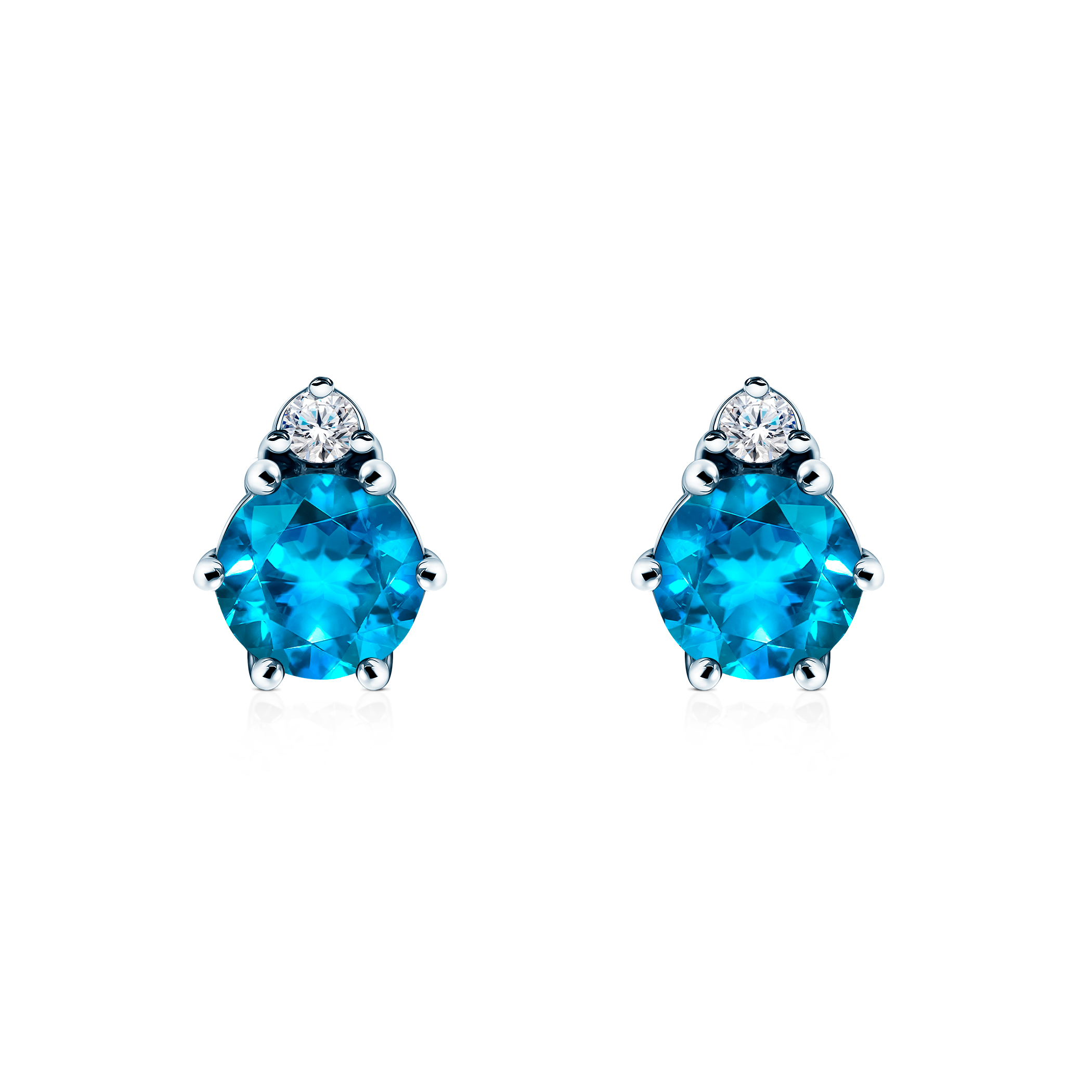 Kolczyki Savicki wykonane z białego złota (próba 585). W kolczykach zostały osadzone 2 topazy o łącznej masie 1,2ct i 2 diamenty o łącznej masie 0,03 ct.