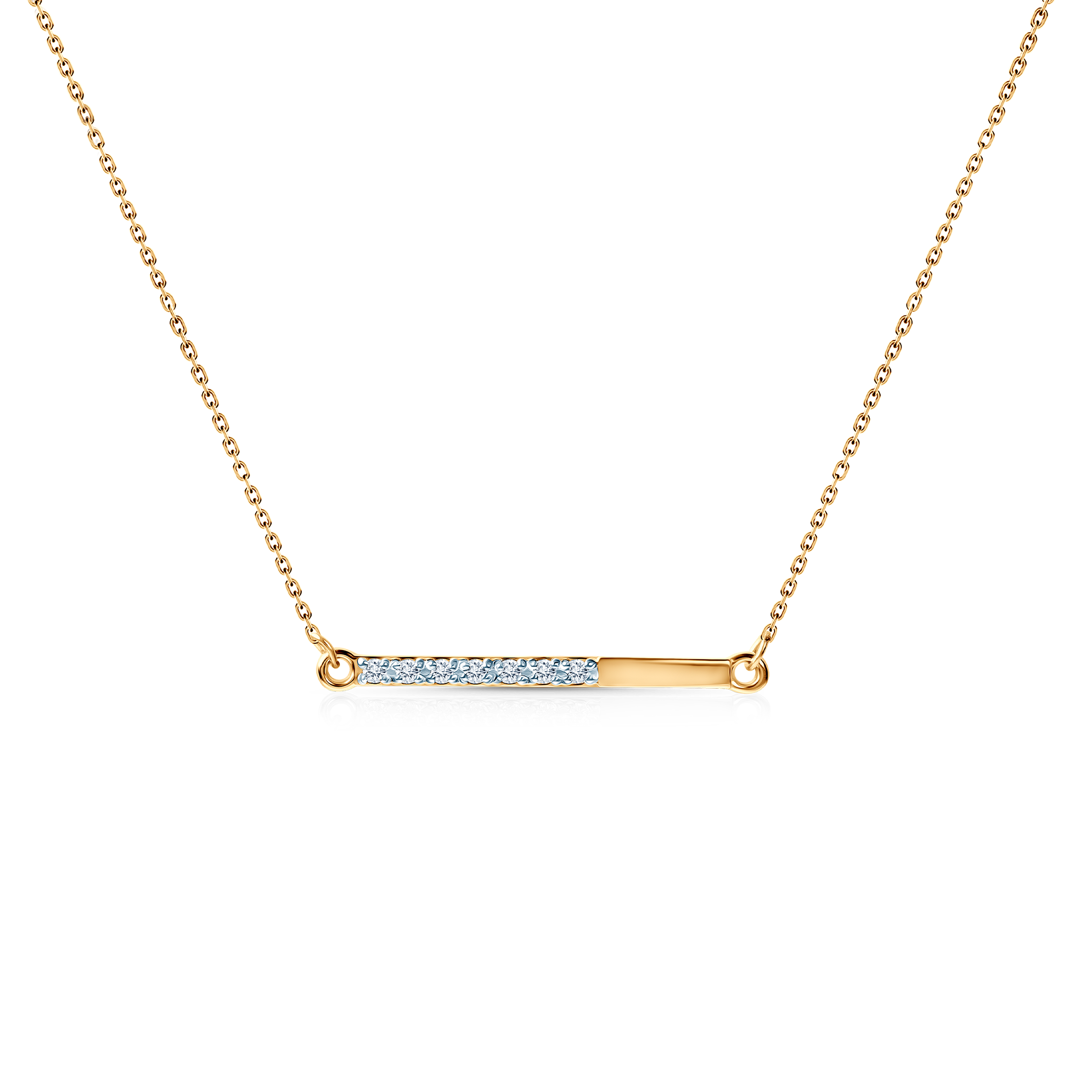 Naszyjnik wykonany z 14-karatowego żółtego złota (próba 585) z 6 diamentami o łącznej masie 0,03ct. Długość naszyjnika: 42 cm.