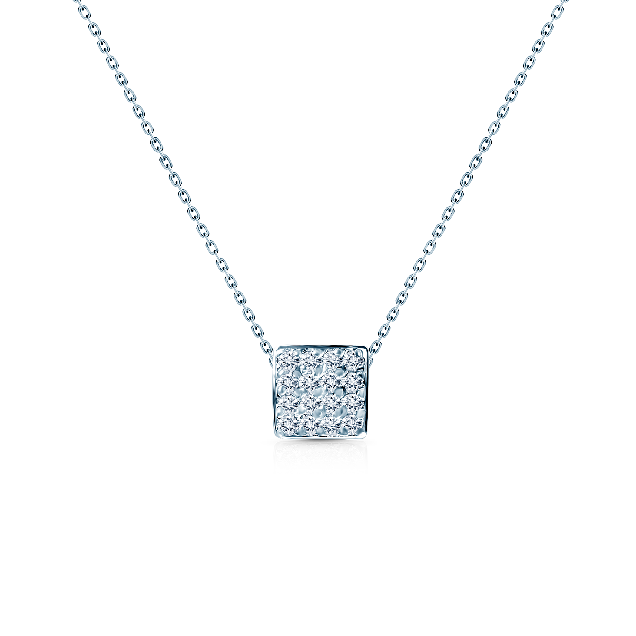 Naszyjnik wykonany z 14-karatowego z białego złota (próba 585) z 16 diamentami o łącznej masie 0,08ct. Długość naszyjnika: 42 cm.