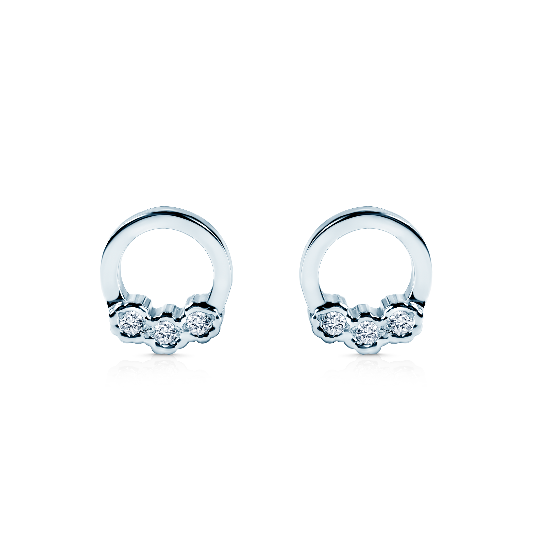 Kolczyki koła Savicki wykonane z białego złota (próba 585). W kolczykach zostało osadzonych 6 diamentów o łącznej masie ok. 0,05 ct.