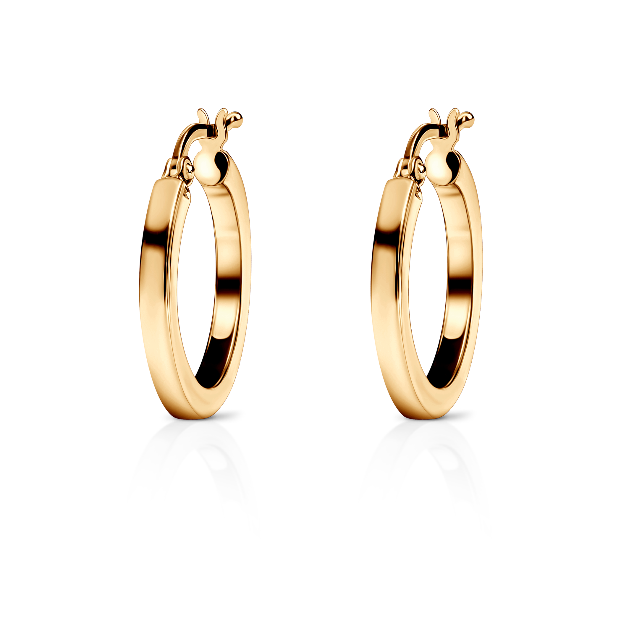 Gładkie obręcze o szerokości 2,5 mm przyciągają subtelnym blaskiem i ponadczasowym stylem, pasując do każdej stylizacji. Wyposażone w wygodne zapięcie typu zatrzask, zapewniają komfort noszenia i pewność, że pozostaną na swoim miejscu.