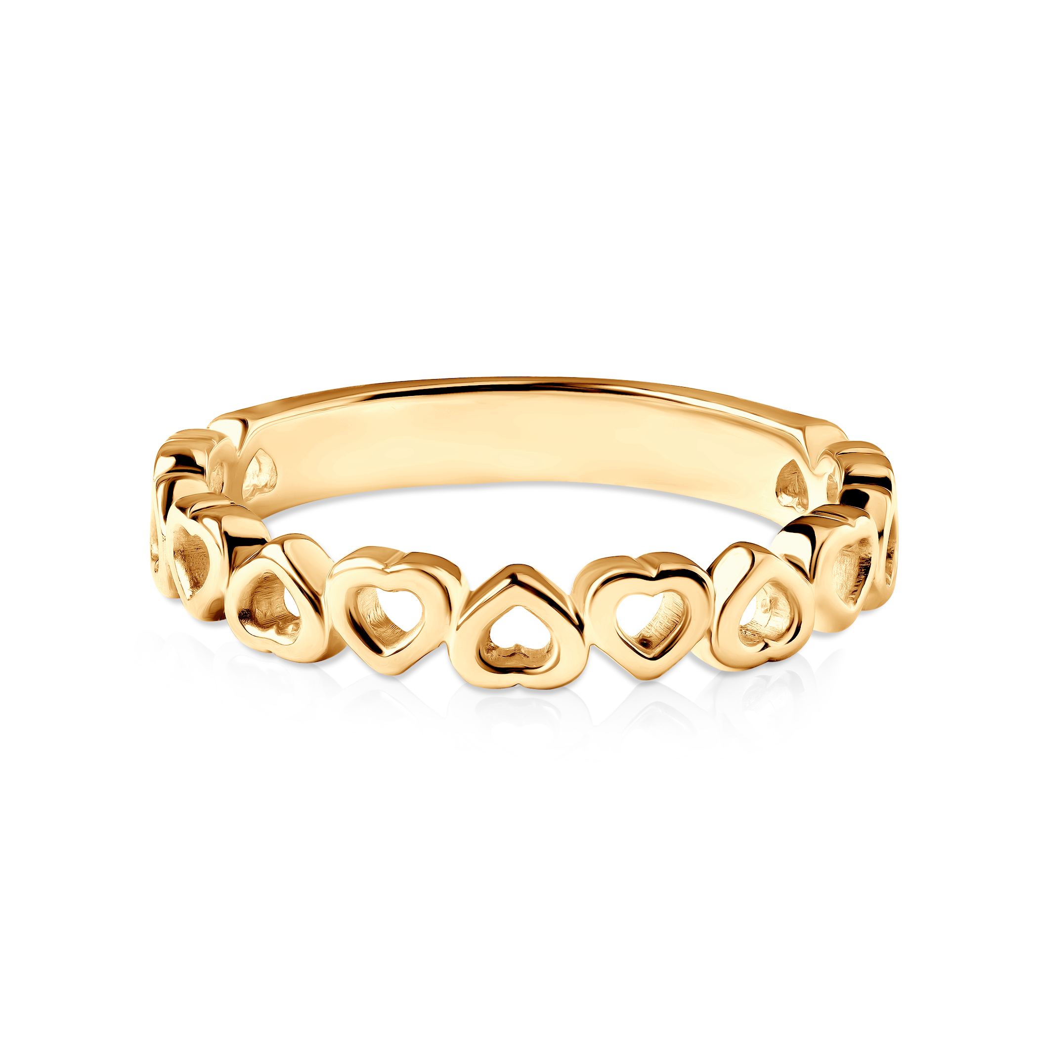 Delikatny motyw serc oplata całą obrączkę, tworząc subtelny wzór pełen uczuć i symboliki. Jego lekko ażurowa forma dodaje biżuterii nowoczesnego charakteru, nie tracąc przy tym klasycznej elegancji.