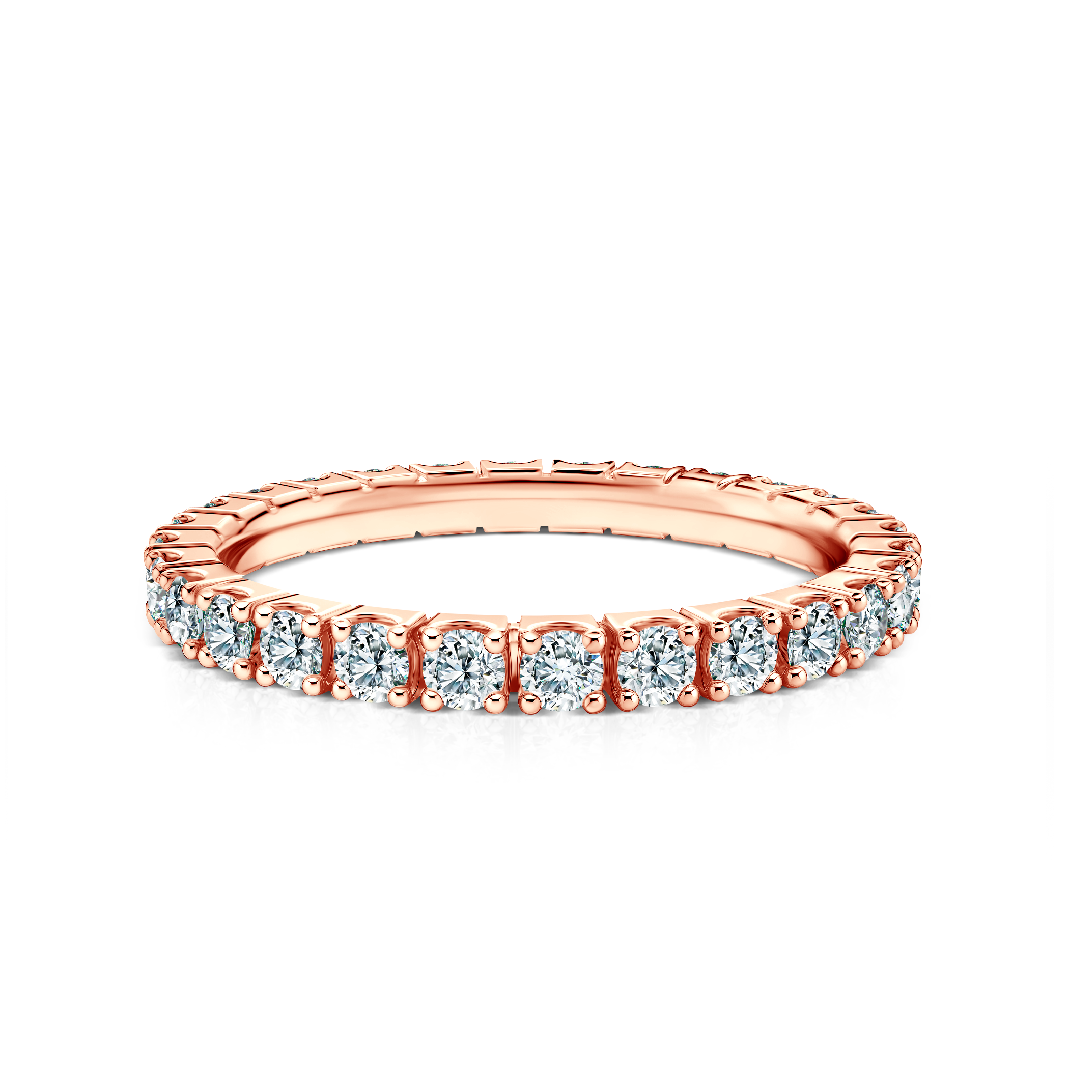 Pierścionek Savicki o szerokości 2,2 mm, wykonany z 14-karatowego różowego złota (próba 0,585) z diamentami laboratoryjnymi.
