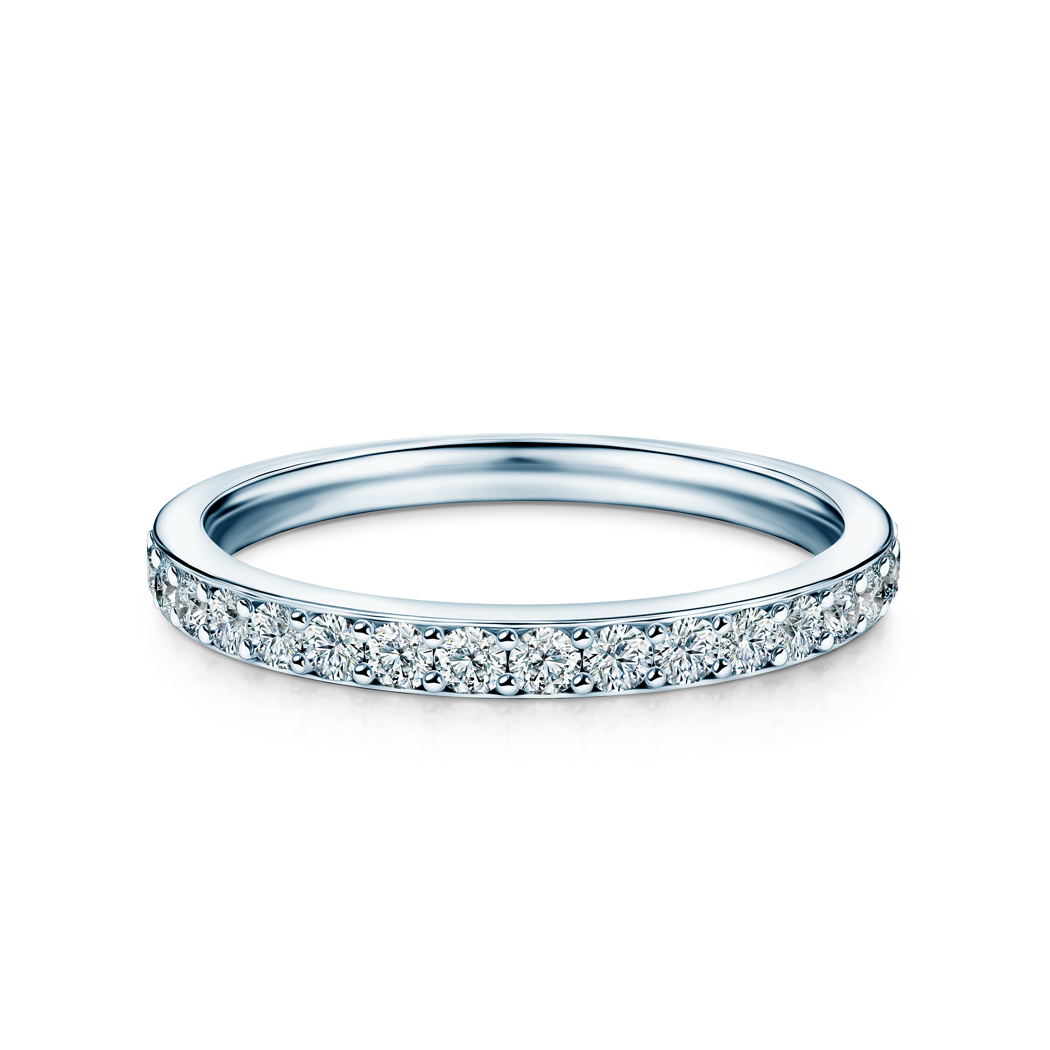 Pierścionek Savicki o szerokości 2,2 mm, wykonany z 14-karatowego białego złota (próba 0,585) z diamentami.