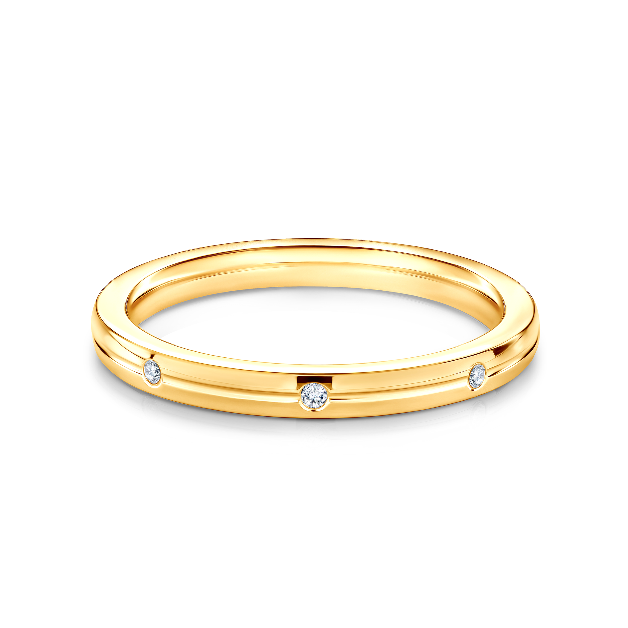 Pierścionek Savicki o szerokości 2,2 mm, wykonany z 14-karatowego żółtego złota (próba 0,585) z diamentami laboratoryjnymi.