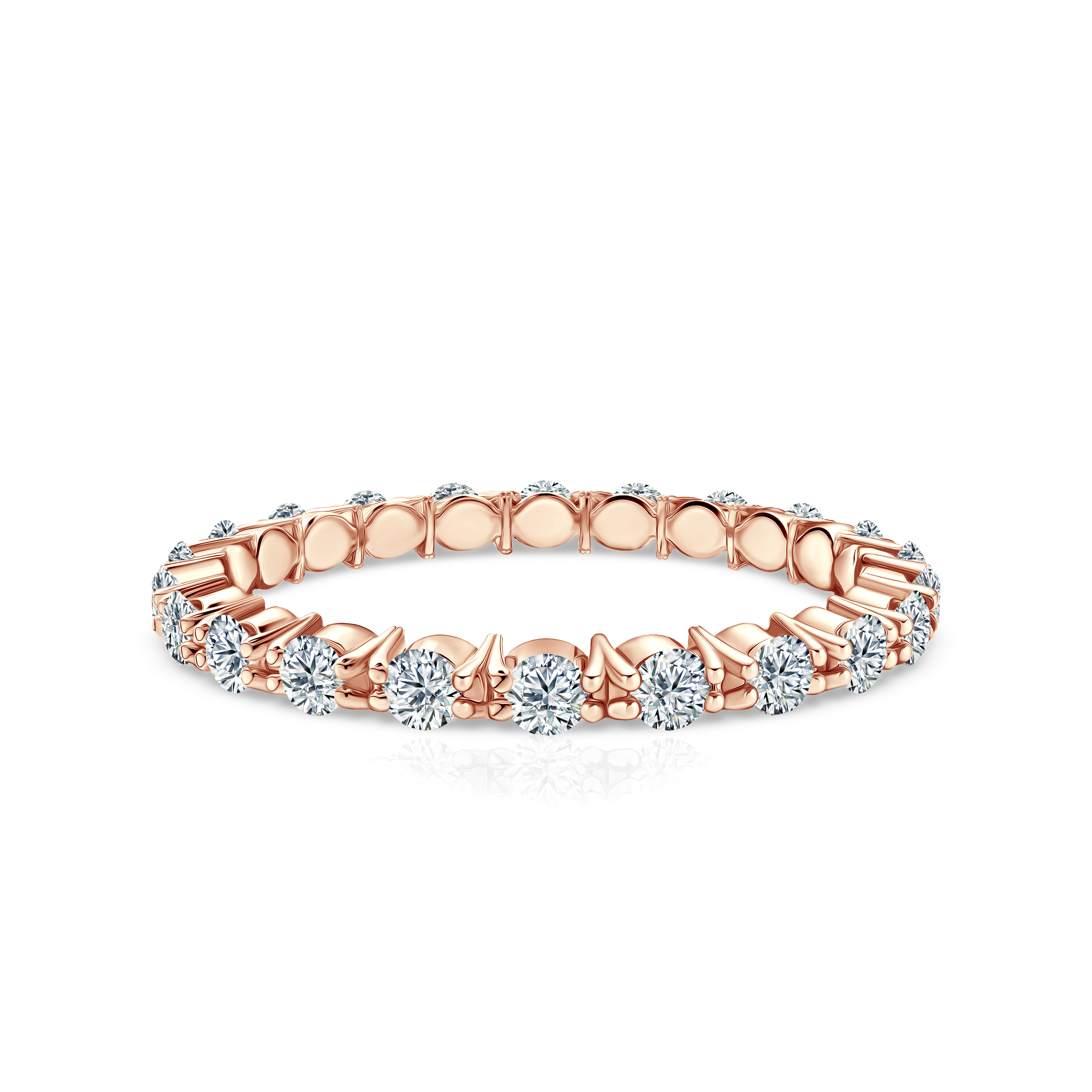 Pierścionek Savicki o szerokości 2,2 mm, wykonany z 14-karatowego różowego złota (próba 0,585) z diamentami laboratoryjnymi. Ilość kamieni w pierścionku różni się w zależności od rozmiaru. W większych pierścionkach występuje więcej kamieni. W tym modelu dla rozmiaru 15 będzie to: 25 kamieni.