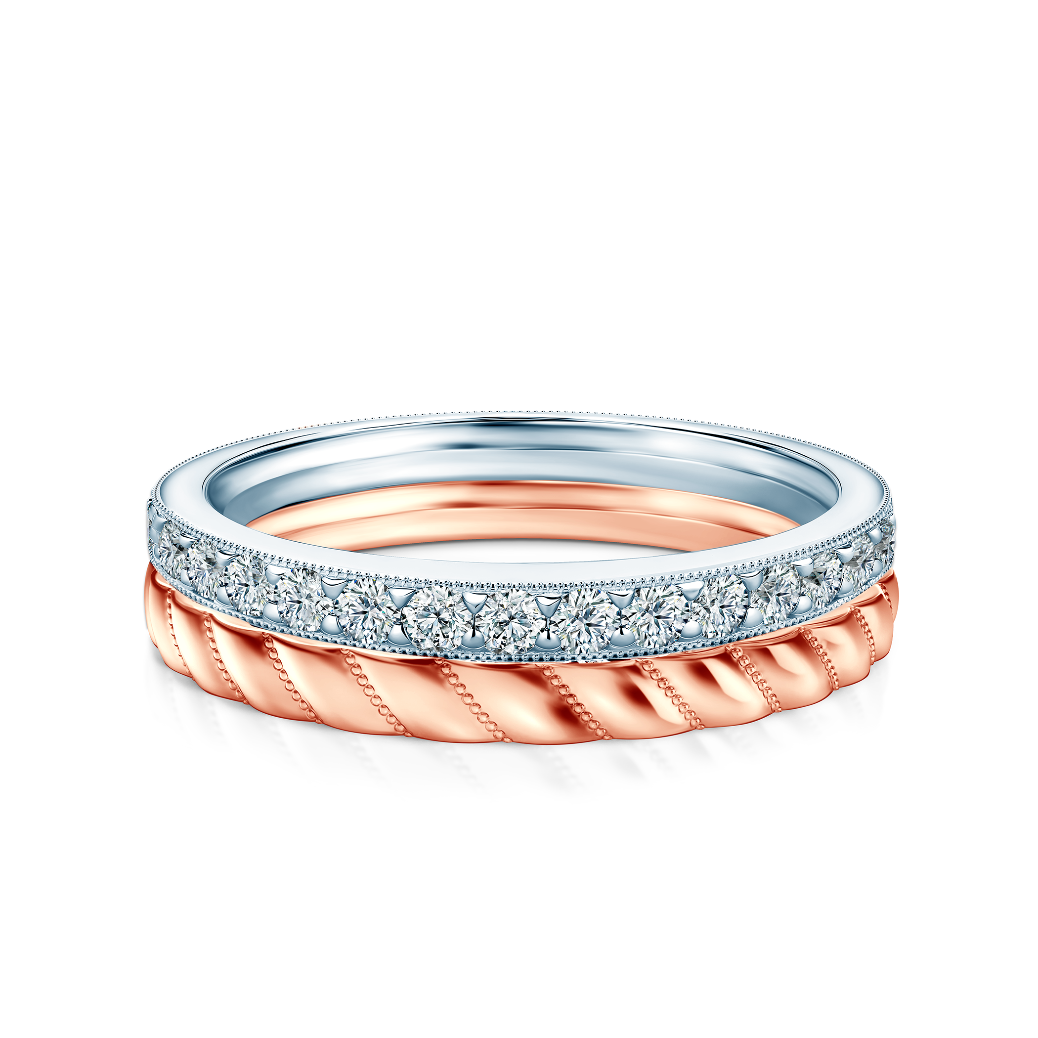Komplet pierścionków z kolekcji Symphony o łącznej szerokości 4,4 mm, wykonany z 14-karatowego złota w dwóch kolorach kruszcu (próba 585) z diamentami laboratoryjnymi.