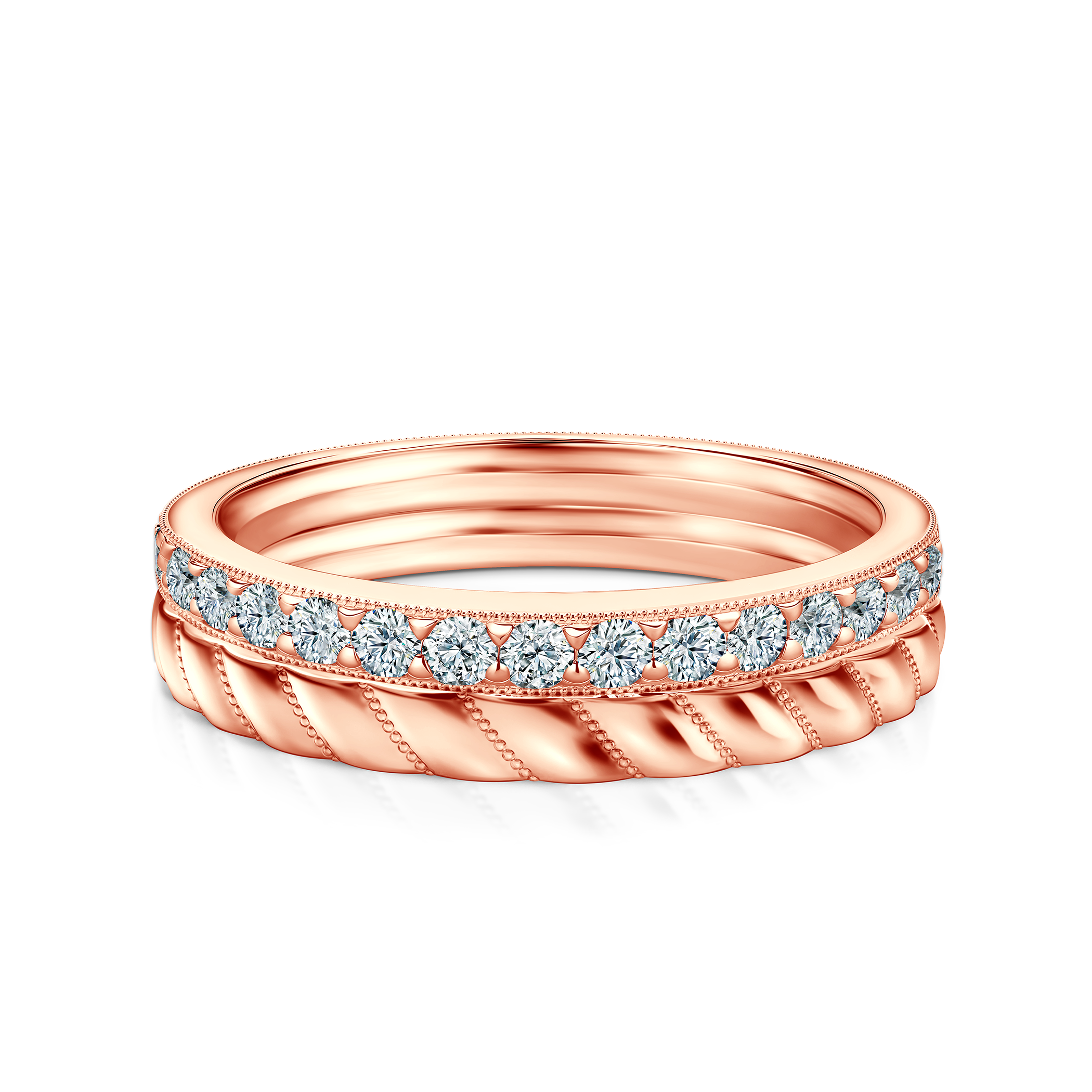 Komplet pierścionków z kolekcji Symphony o łącznej szerokości 4,4 mm, wykonany z 14-karatowego różowego złota (próba 585) z diamentami.