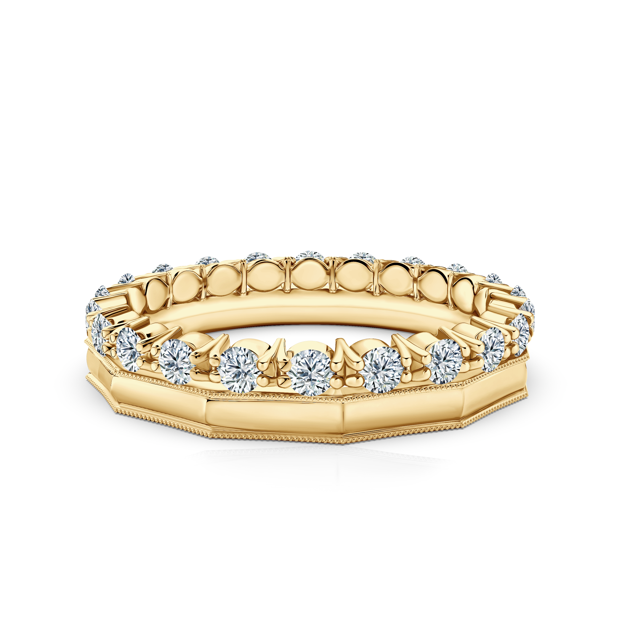Komplet pierścionków z kolekcji Symphony o łącznej szerokości 4,4 mm, wykonany z 14-karatowego żółtego złota (próba 585) z diamentami.