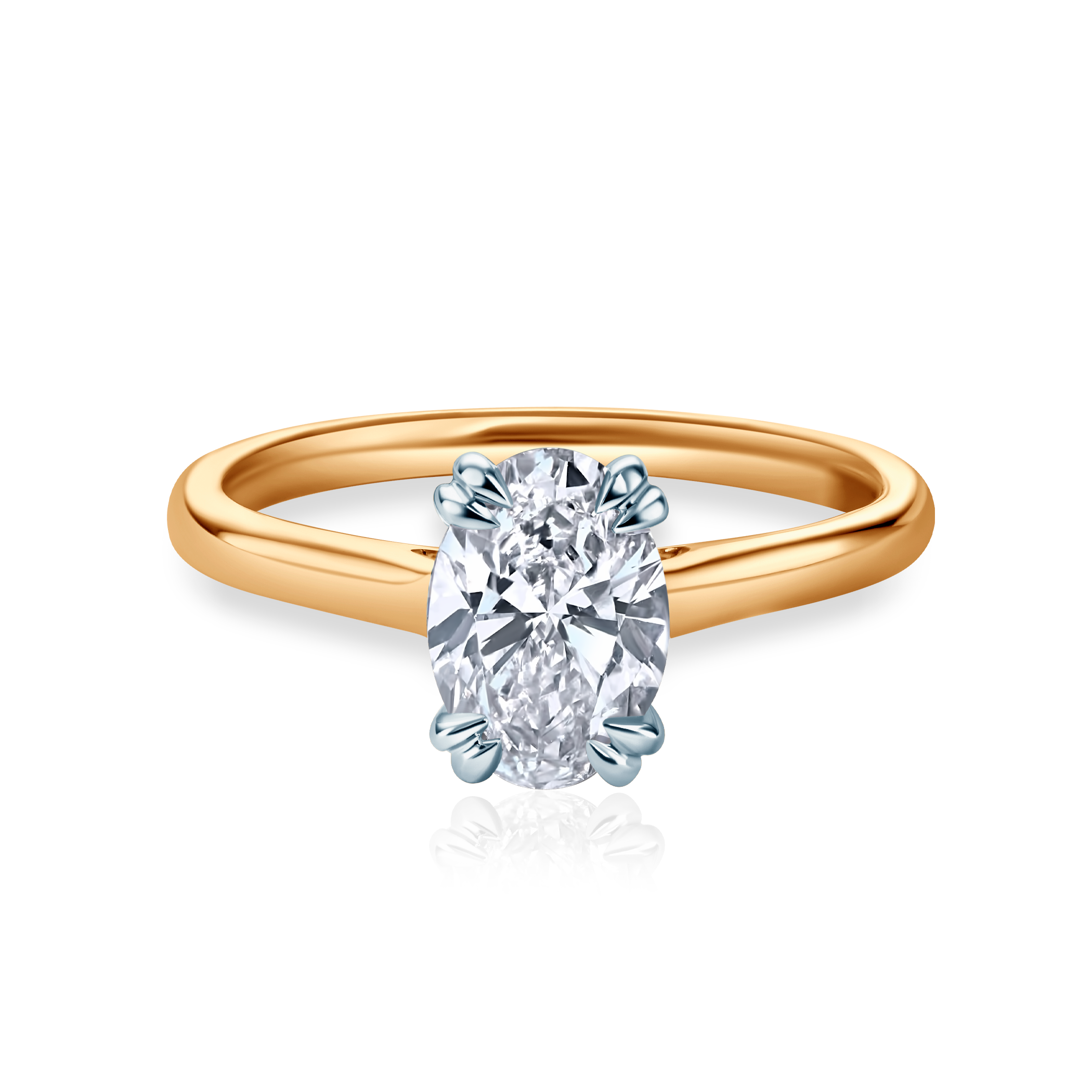 Pierścionek zaręczynowy z diamentem laboratoryjnym o masie 1ct w szlifie owalnym, czystości VS/F wykonany z połączenia 14-karatowego żółtego i białego złota (próba 585).