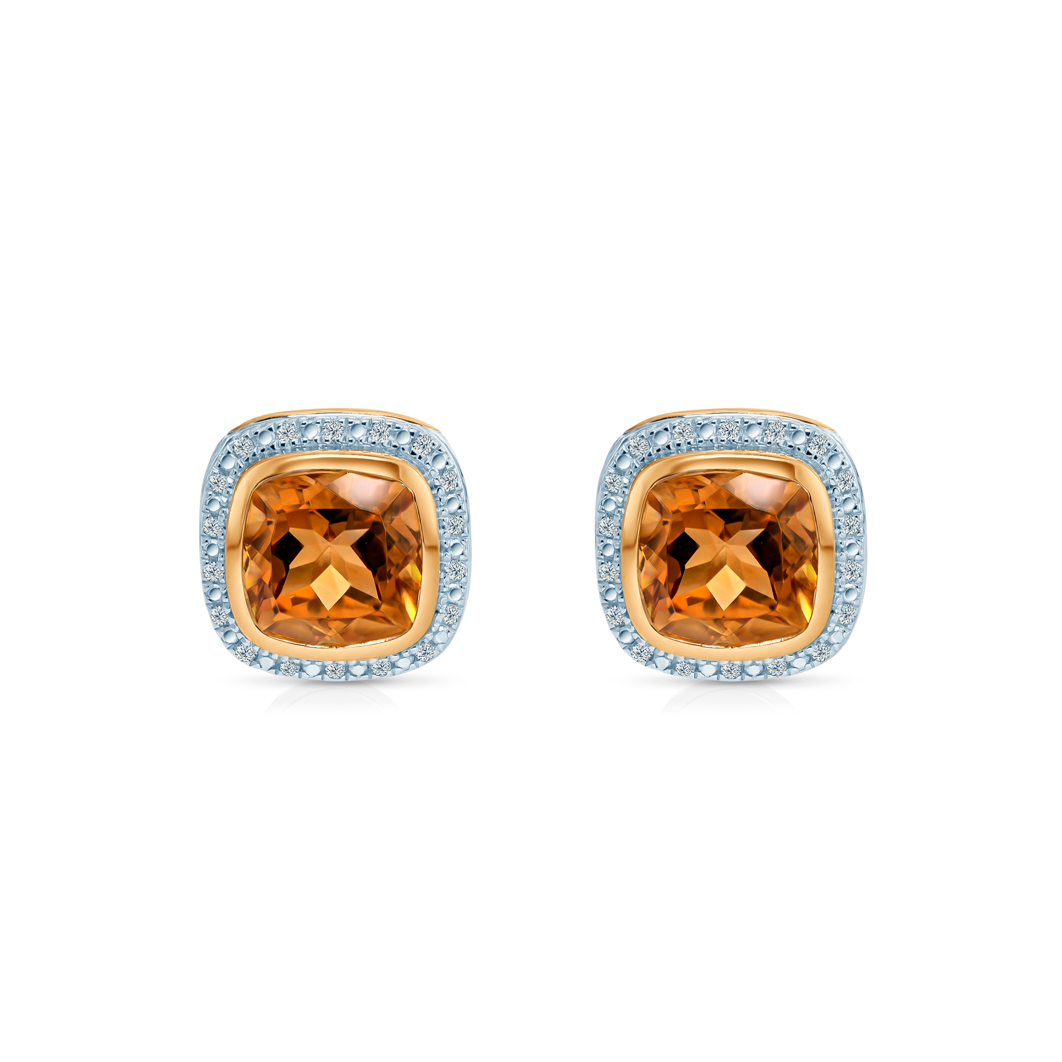Kolczyki Savicki wykonane z połączenia 14-karatowego żółtego i białego złota (próba 585). W kolczykach zostały osadzone 2 cytryny o łącznej masie 1,9ct oraz 32 diamentów o łącznej masie 0,06 ct, szlifie brylantowym i czystości SI2/H.