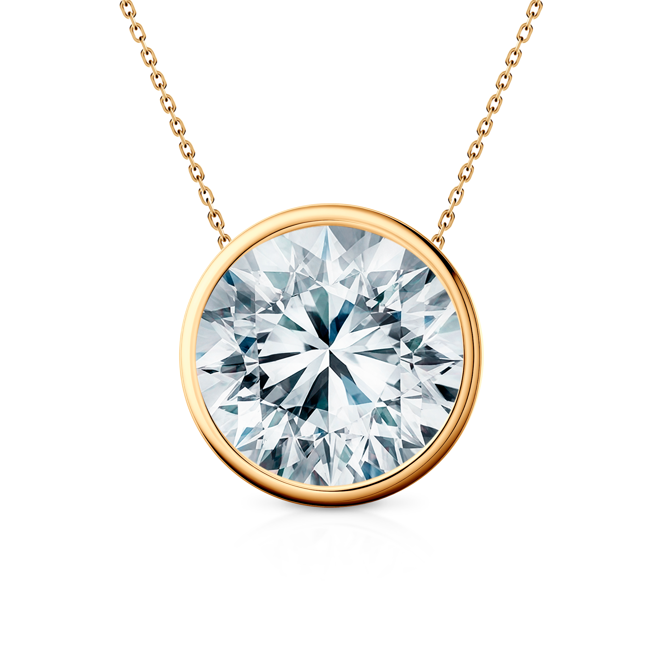 Naszyjnik wykonany z 14-karatowego żółtego złota (próba 585). W naszyjniku został osadzony diament laboratoryjny o masie 1ct i szlifie brylantowym oraz wysokiej czystości SI2/H.