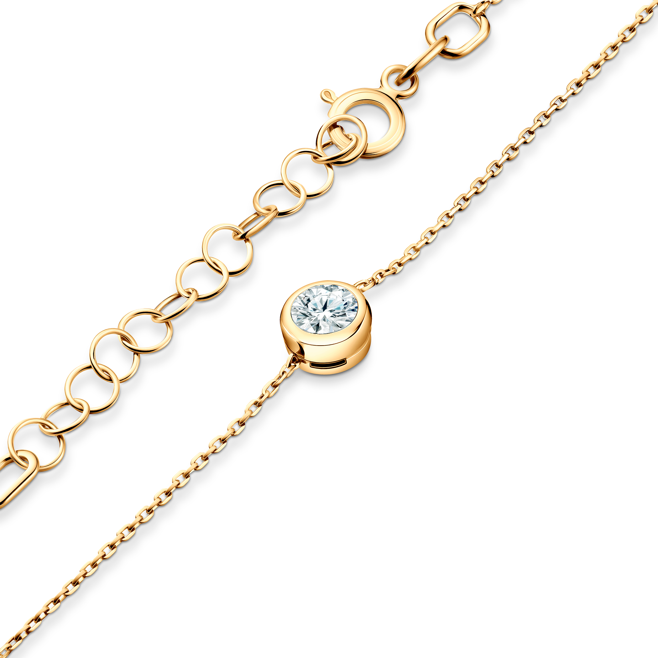 Naszyjnik wykonany z 14-karatowego żółtego złota (próba 585). W naszyjniku został osadzony diament laboratoryjny o masie 0,5 ct i szlifie brylantowym oraz wysokiej czystości SI2/H.