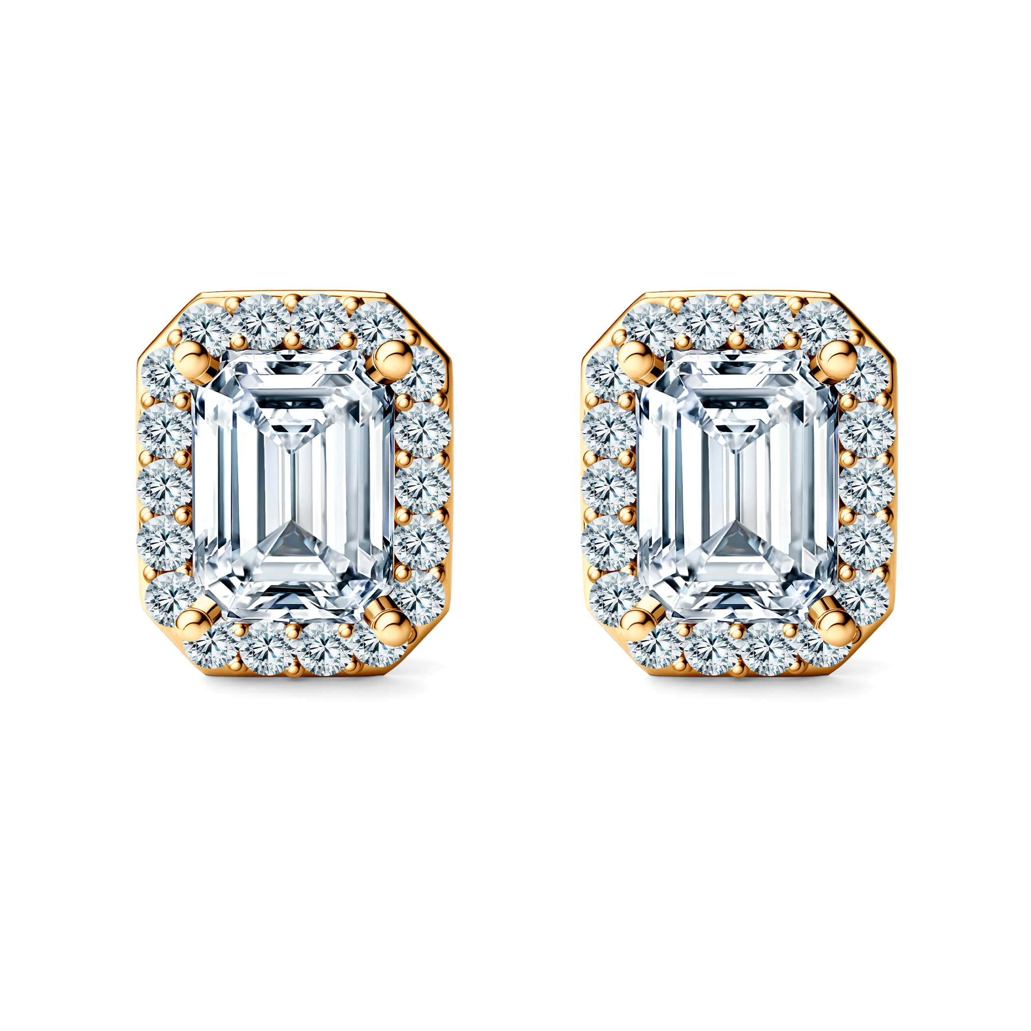 Kolczyki z 2 diamentami laboratoryjnymi o łącznej masie 0,98ct i szlifie szmaragdowym, 36 diamentami laboratoryjnymi o łącznej masie 0,18ct i szlifie brylantowym wykonane z żółtego złota (próba 585).