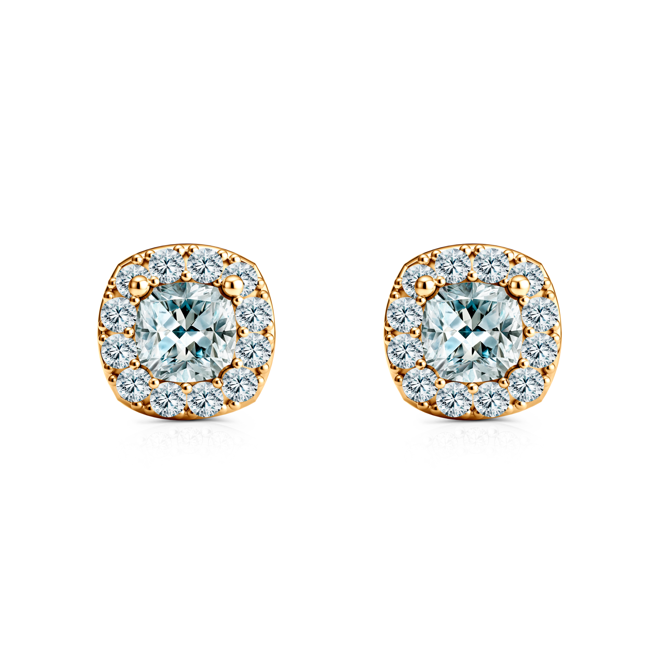 Kolczyki z 2 diamentami o łącznej masie 0,3 ct i szlifie poduszkowym, 24 diamentami o łącznej masie 0,12ct i szlifie brylantowym wykonane z żółtego złota (próba 585).