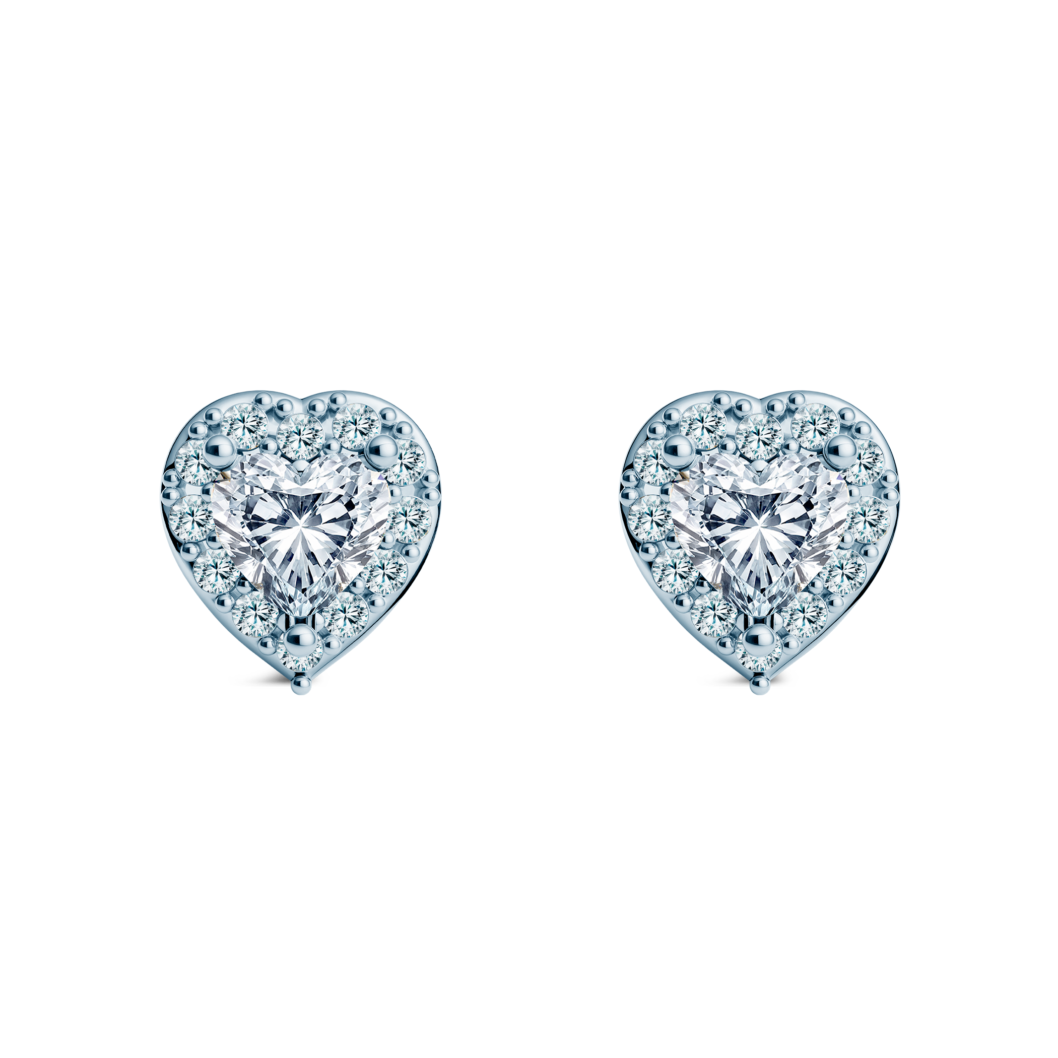 Kolczyki z 2 diamentami o łącznej masie 0,3 ct i szlifie serce, 24 diamentami o łącznej masie 0,12ct i szlifie brylantowym wykonane z białego złota (próba 585).