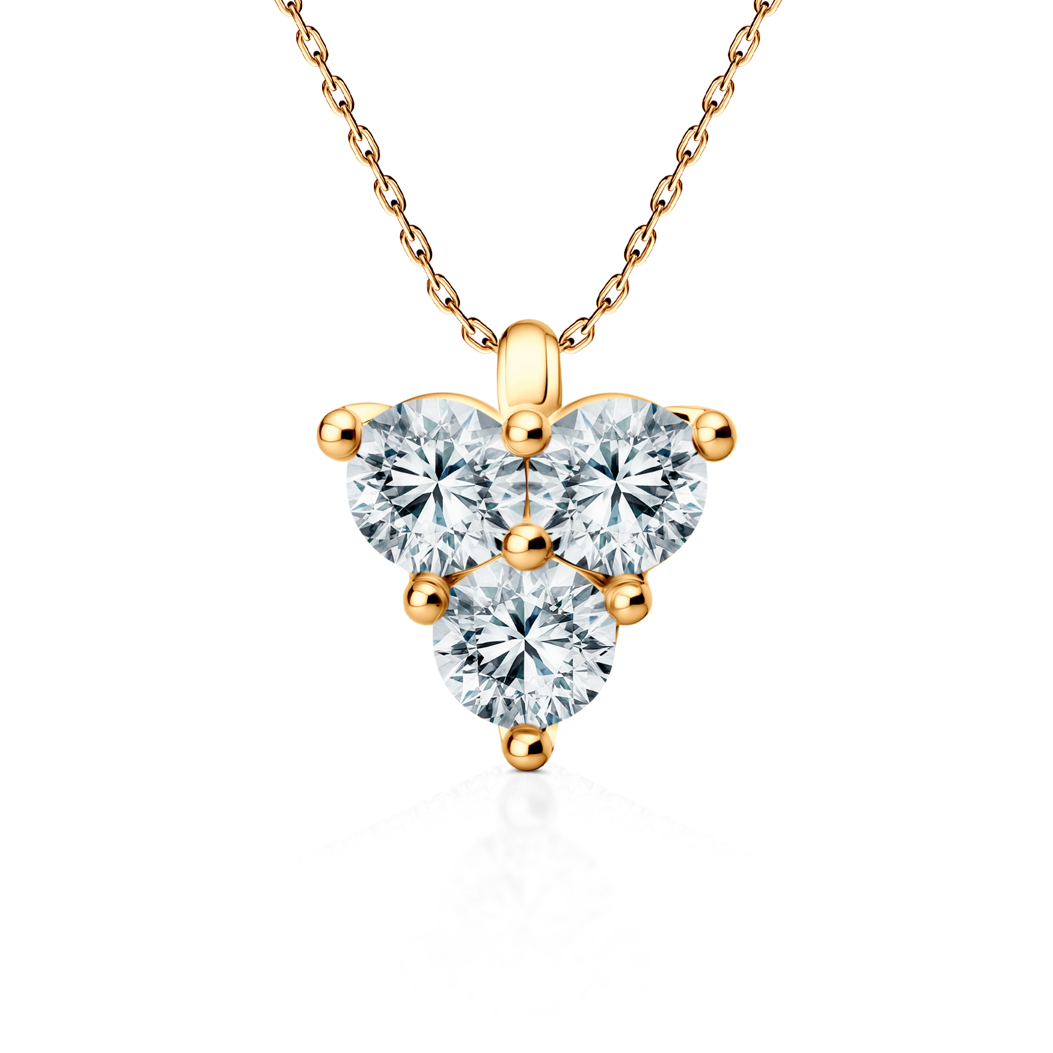 W naszyjniku został osadzone 3 diamenty laboratoryjne o szlifie brylantowym i łącznej masie 0,45 ct. Naszyjnik wykonany z żółtego złota (próba 585).