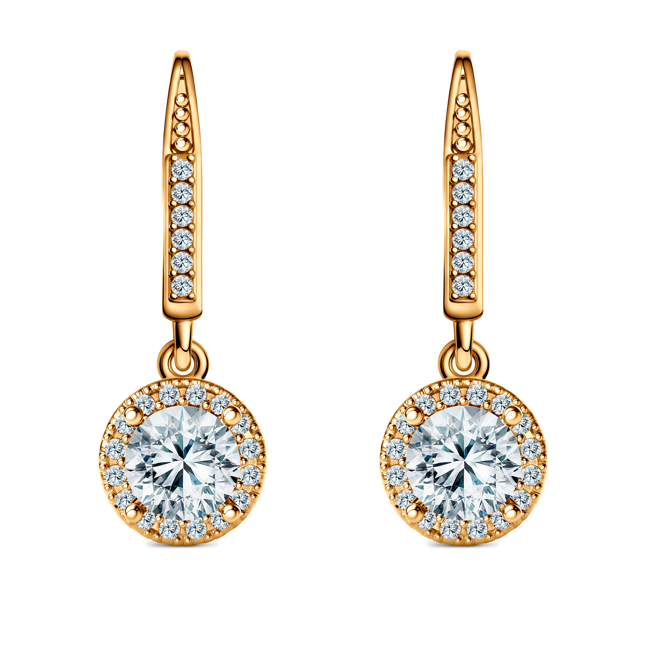Kolczyki z 2 diamentami laboratoryjnymi o łącznej masie 1,00 ct i szlifie brylantowym oraz 44 diamentami laboratoryjnymi o łącznej masie 0,22ct i szlifie brylantowym wykonane z żółtego złota (próba 585).