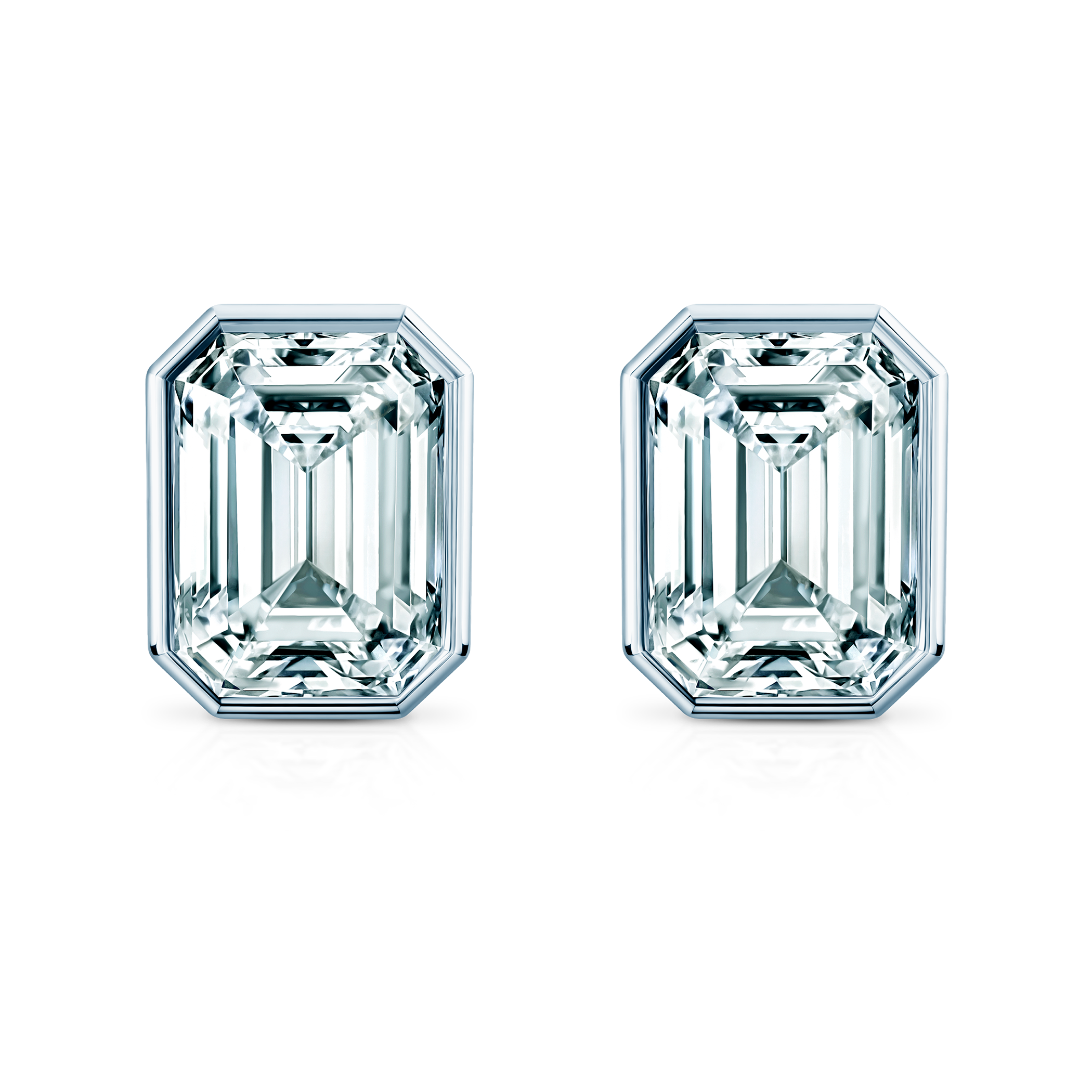 Kolczyki wykonane z 14-karatowego białego złota (próba 585). W kolczykach zostały osadzone diamenty laboratoryjne o szlifie szmaragdowym.