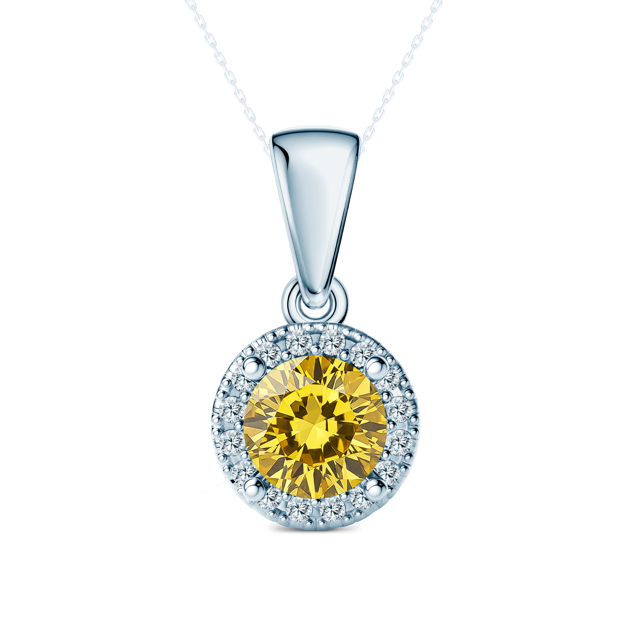 Zawieszka wykonana z 14-karatowego białego złota (próba 585). W zawieszce osadzony został żółty diament laboratoryjny o masie 0,5 ct i szlifie brylantowym oraz 16 diamenty laboratoryjny o łącznej masie 0,08 ct.