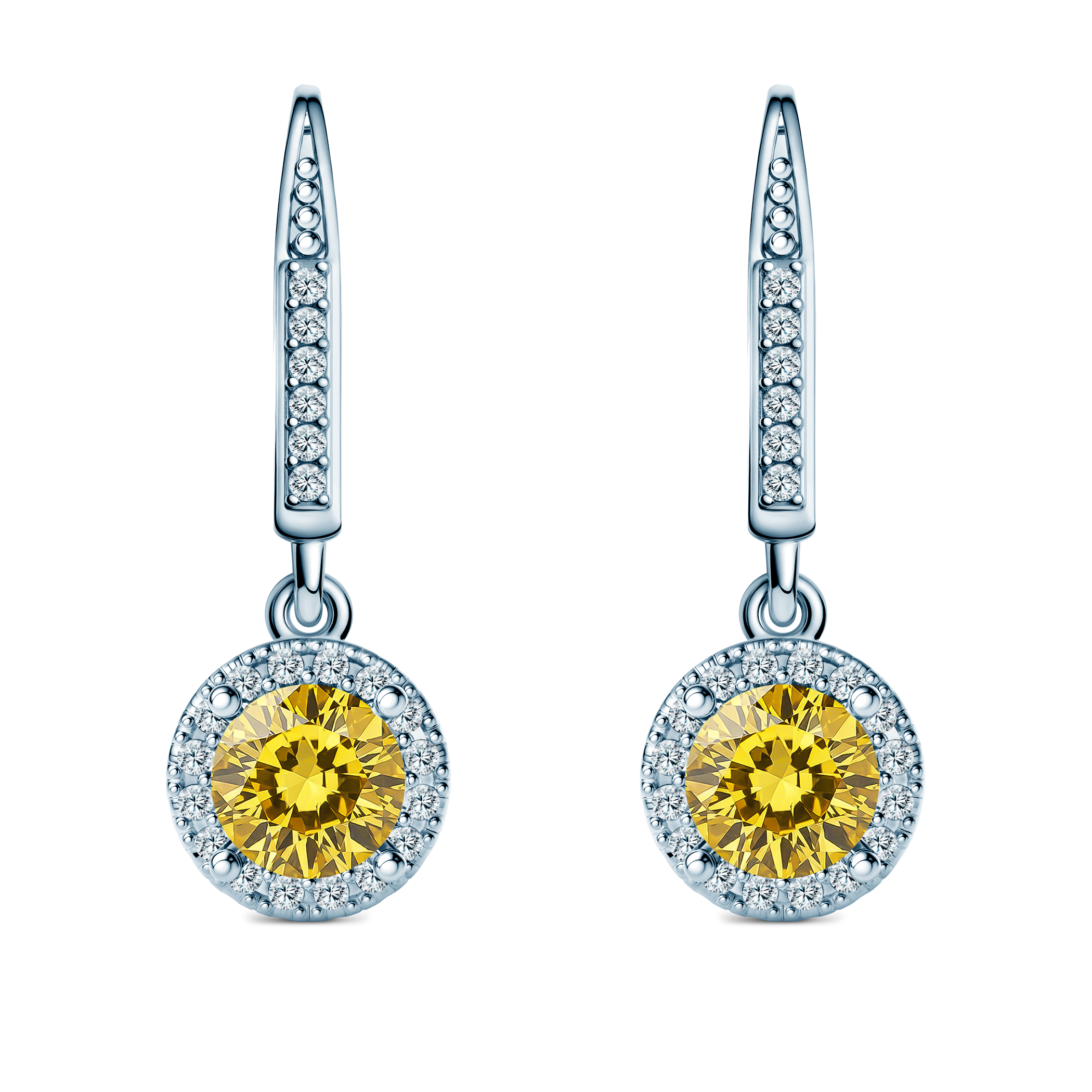 Kolczyki z 2 żółtymi diamentami laboratoryjnymi o łącznej masie 1,00 ct i szlifie brylantowym oraz 44 diamentami laboratoryjnymi o łącznej masie 0,22ct i szlifie brylantowym wykonane z białego złota (próba 585).