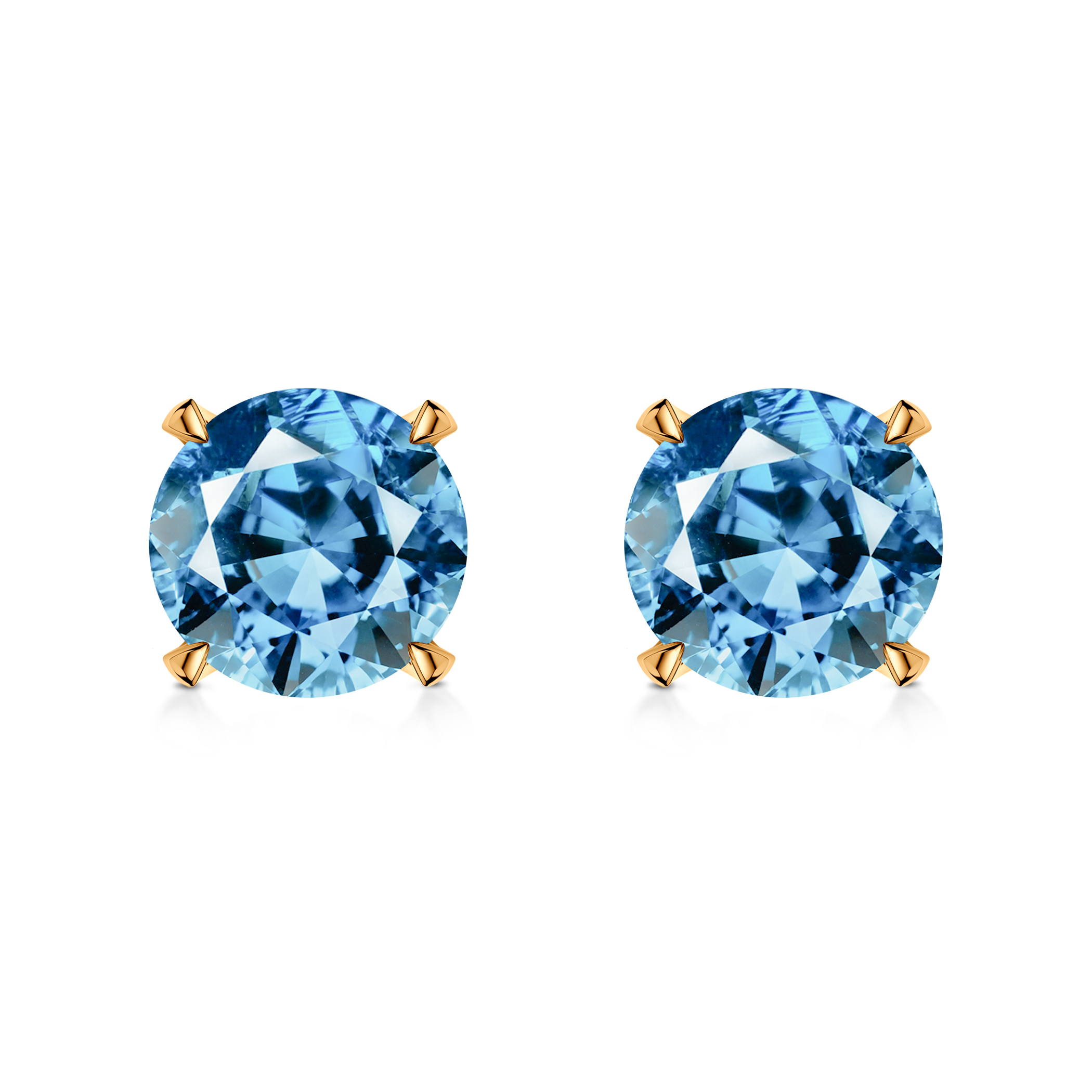 Olśniewające kolczyki z kolekcji SAVICKI. W kolczykach osadzono dwa niebieskie diamenty laboratoryjne o łącznej masie 1,00 ct w szlifie brylantowym. Kolczyki zostały wykonane z żółtego złota(próba 585).
