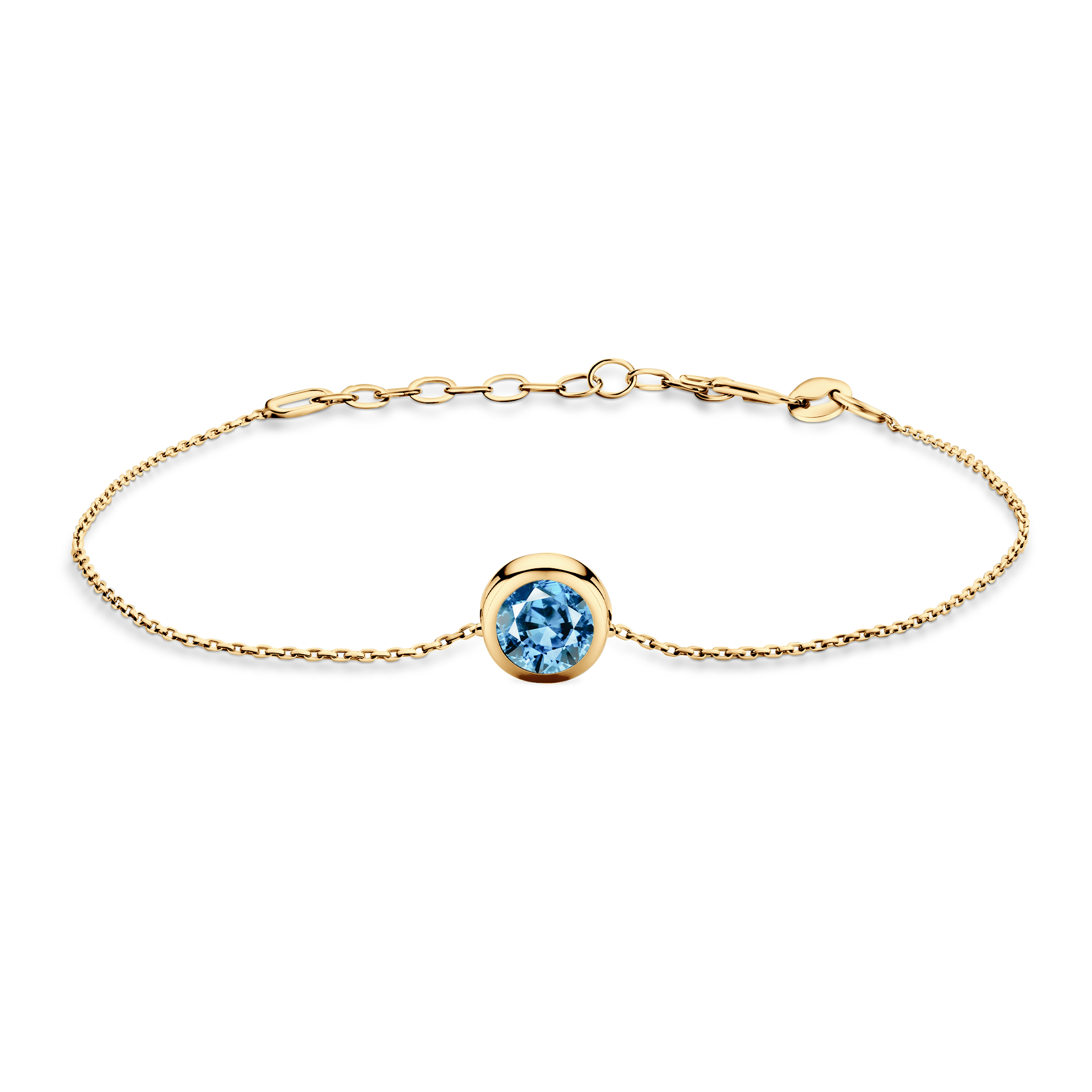 Naszyjnik wykonany z 14-karatowego żółtego złota (próba 585). W naszyjniku został osadzony niebieski diament laboratoryjny o masie 0,5 ct i szlifie brylantowym.