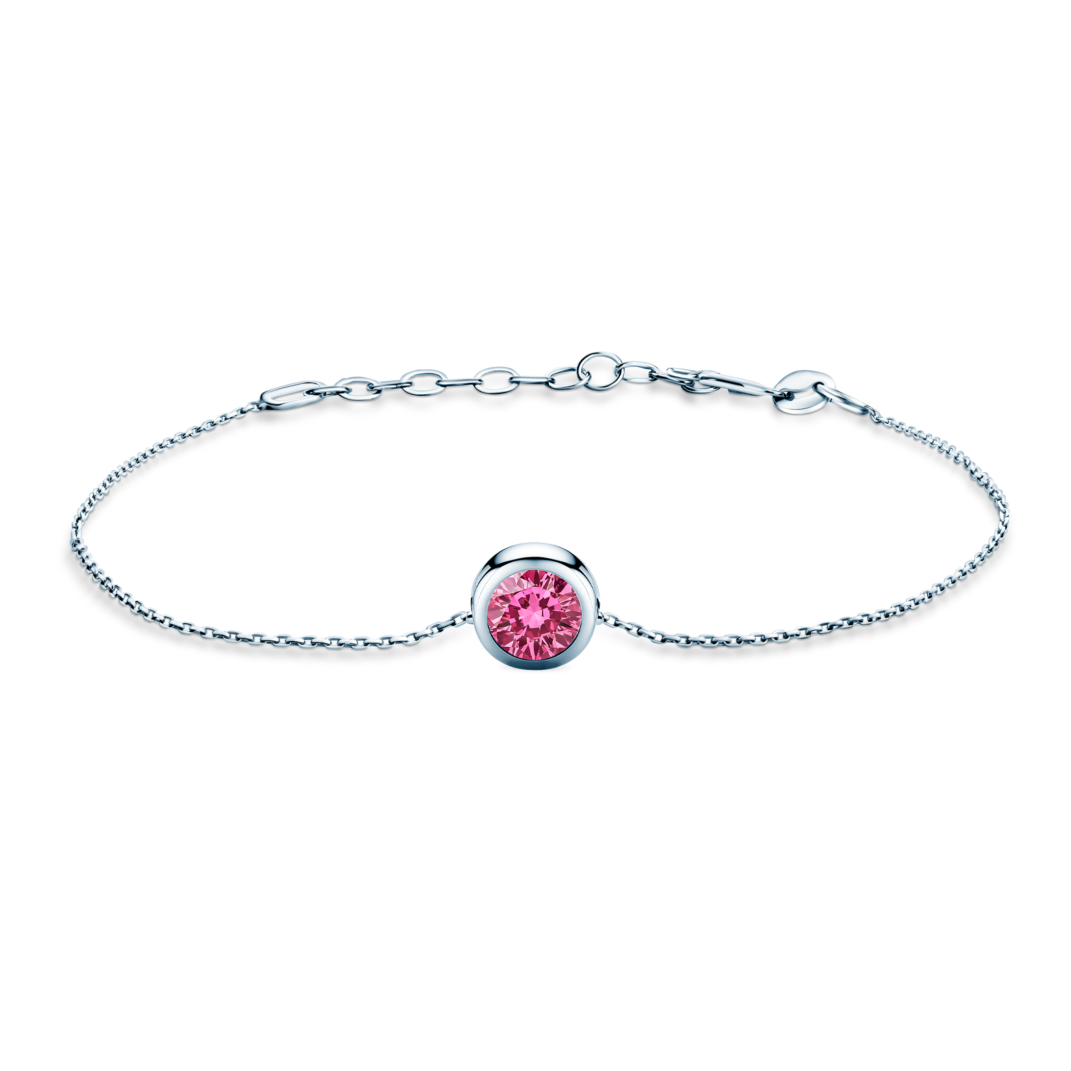 Bransoletka wykonana z 14-karatowego białego złota (próba 585). W bransoletce został osadzony różowy diament laboratoryjny o masie 0,5 ct i szlifie brylantowym.