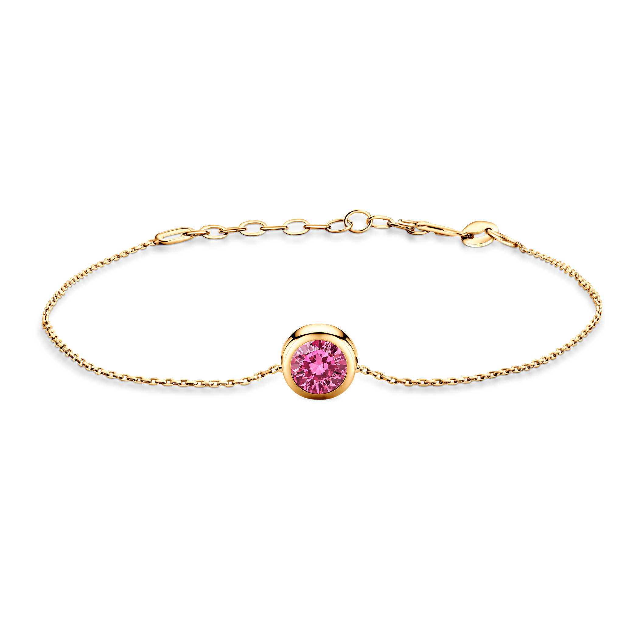 Naszyjnik wykonany z 14-karatowego żółtego złota (próba 585). W naszyjniku został osadzony różowy diament laboratoryjny o masie 0,5 ct i szlifie brylantowym.