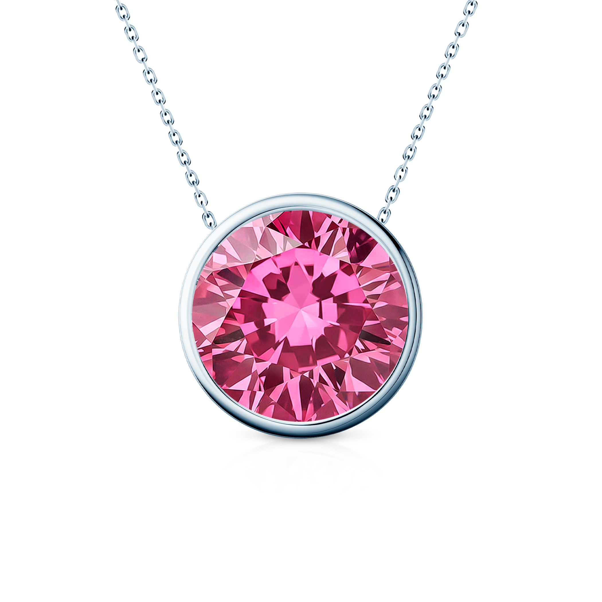 Naszyjnik wykonany z 14-karatowego białego złota (próba 585). W naszyjniku został osadzony różowy diament laboratoryjny o masie 0,5 ct i szlifie brylantowym.