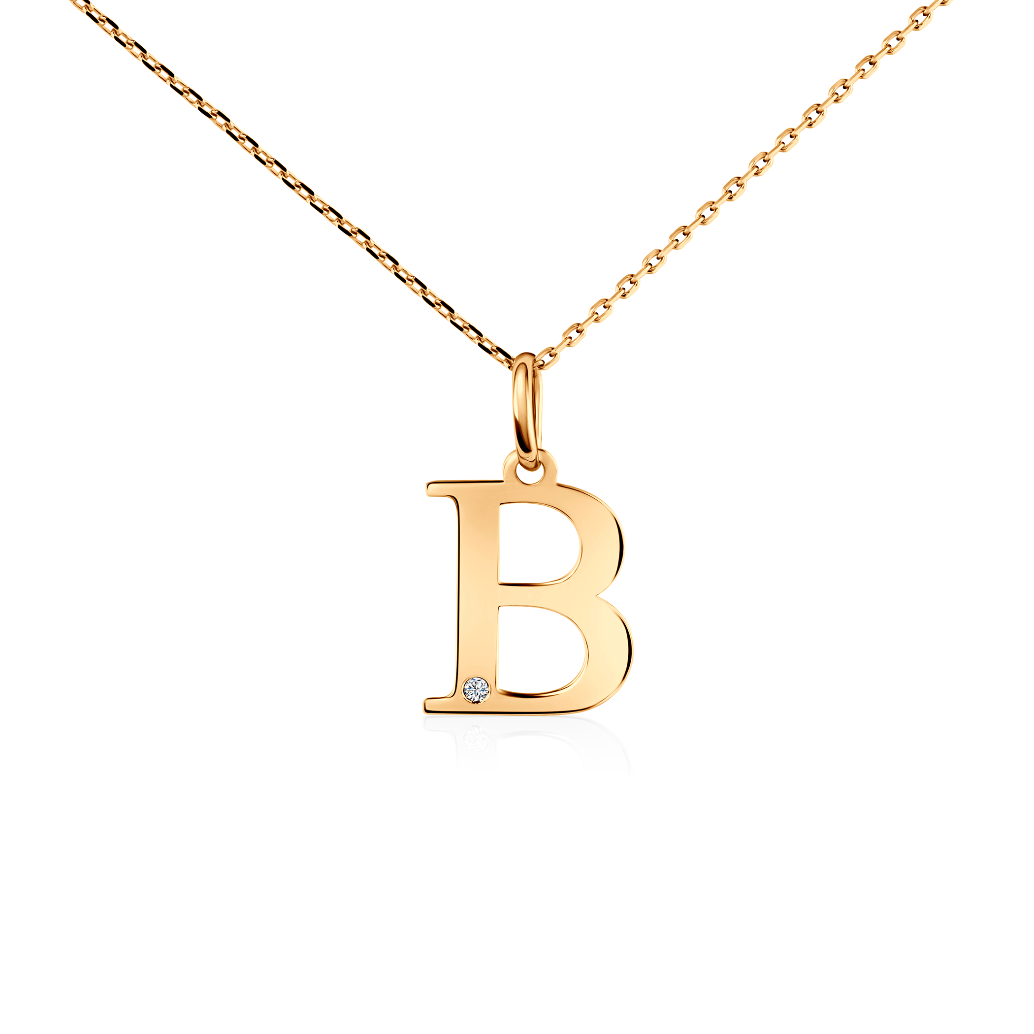 Naszyjnik litera "B" Savicki wykonany z 14 karatowego żółtego złota (próba 585) pozłocony żółtym złotem. W naszyjniku osadzony został diament o masie 0,005 ct i szlifie brylantowym.