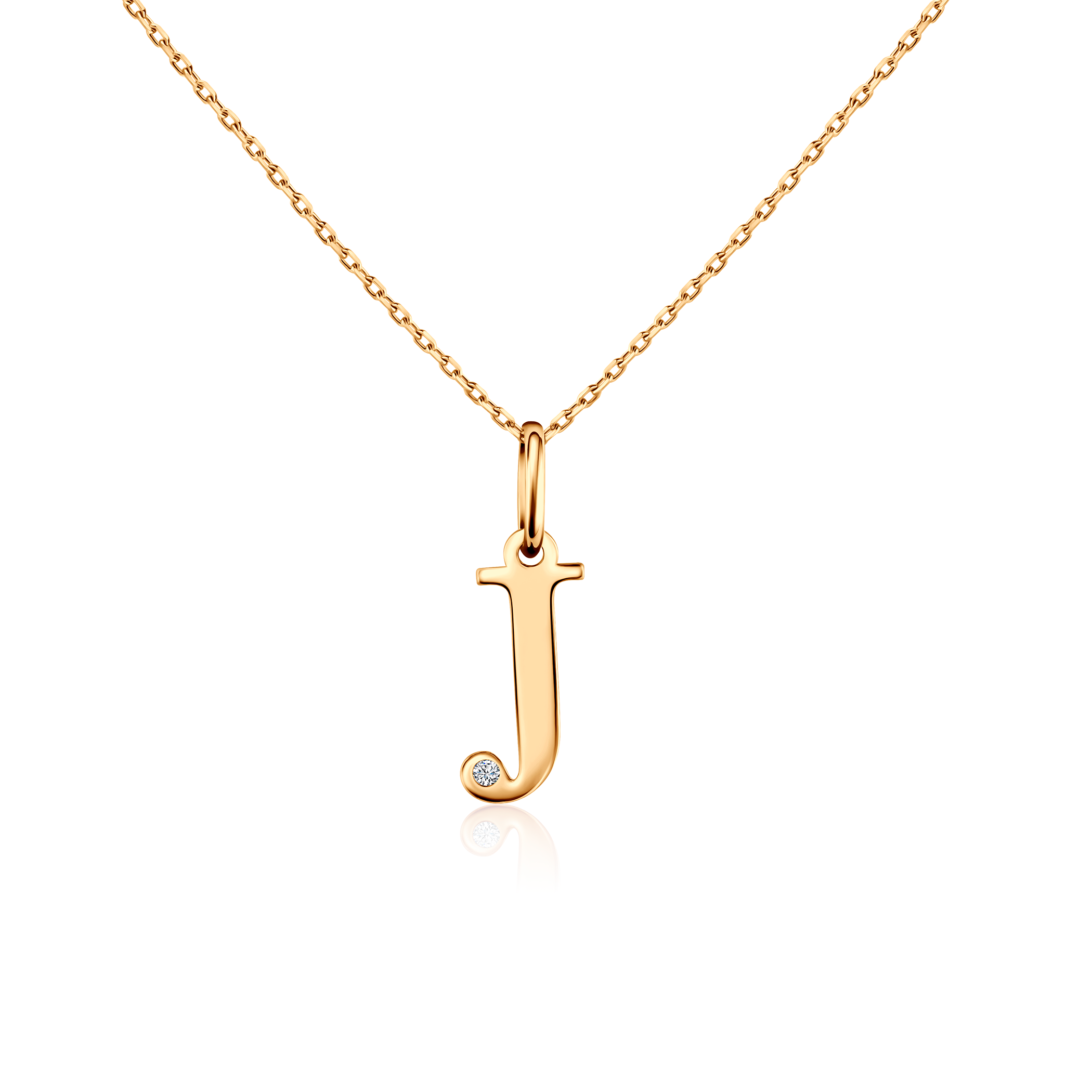 Naszyjnik litera "J" Savicki wykonany z 14 karatowego żółtego złota (próba 585) pozłocony żółtym złotem. W naszyjniku osadzony został diament o masie 0,005 ct i szlifie brylantowym.