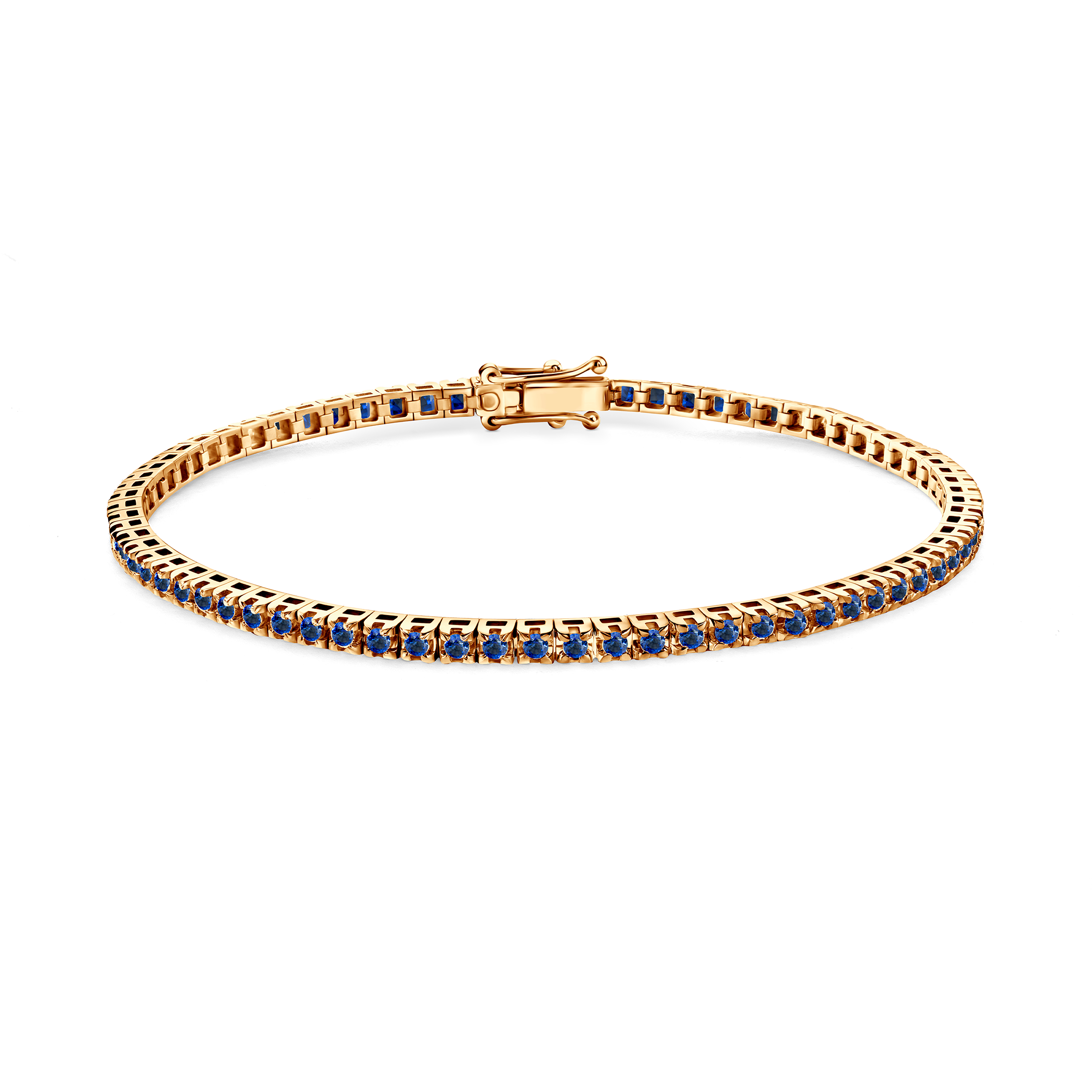 Bransoletka Savicki wykonana z żółtego złota (próba 585). W bransoletce osadzono 79 niebieskich szafirów o łącznej masie 2,37 ct.