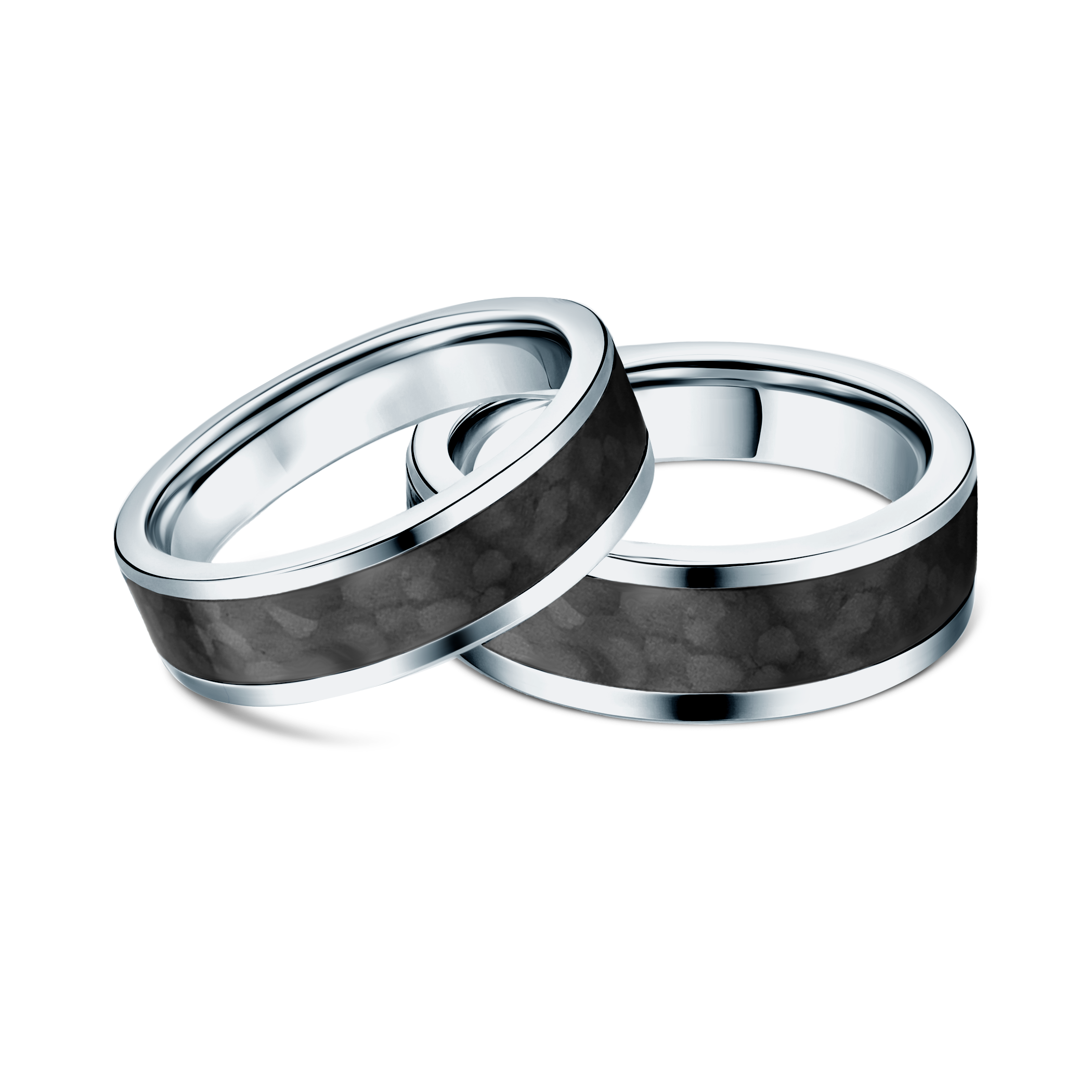 Obrączki ślubne płaskie wykonane z carbonu i tytanu.