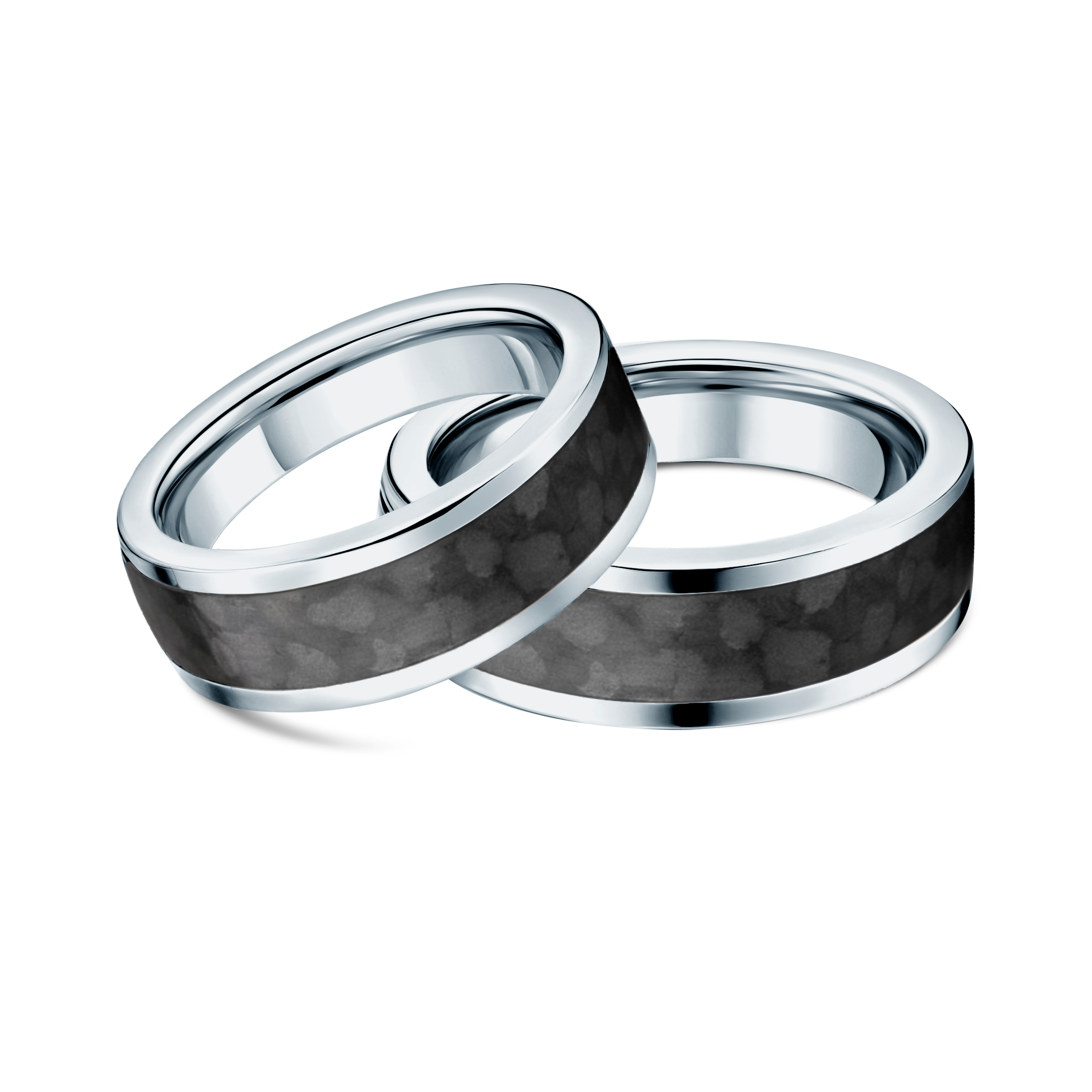 Obrączki ślubne półokrągłe wykonane z carbonu i tytanu.