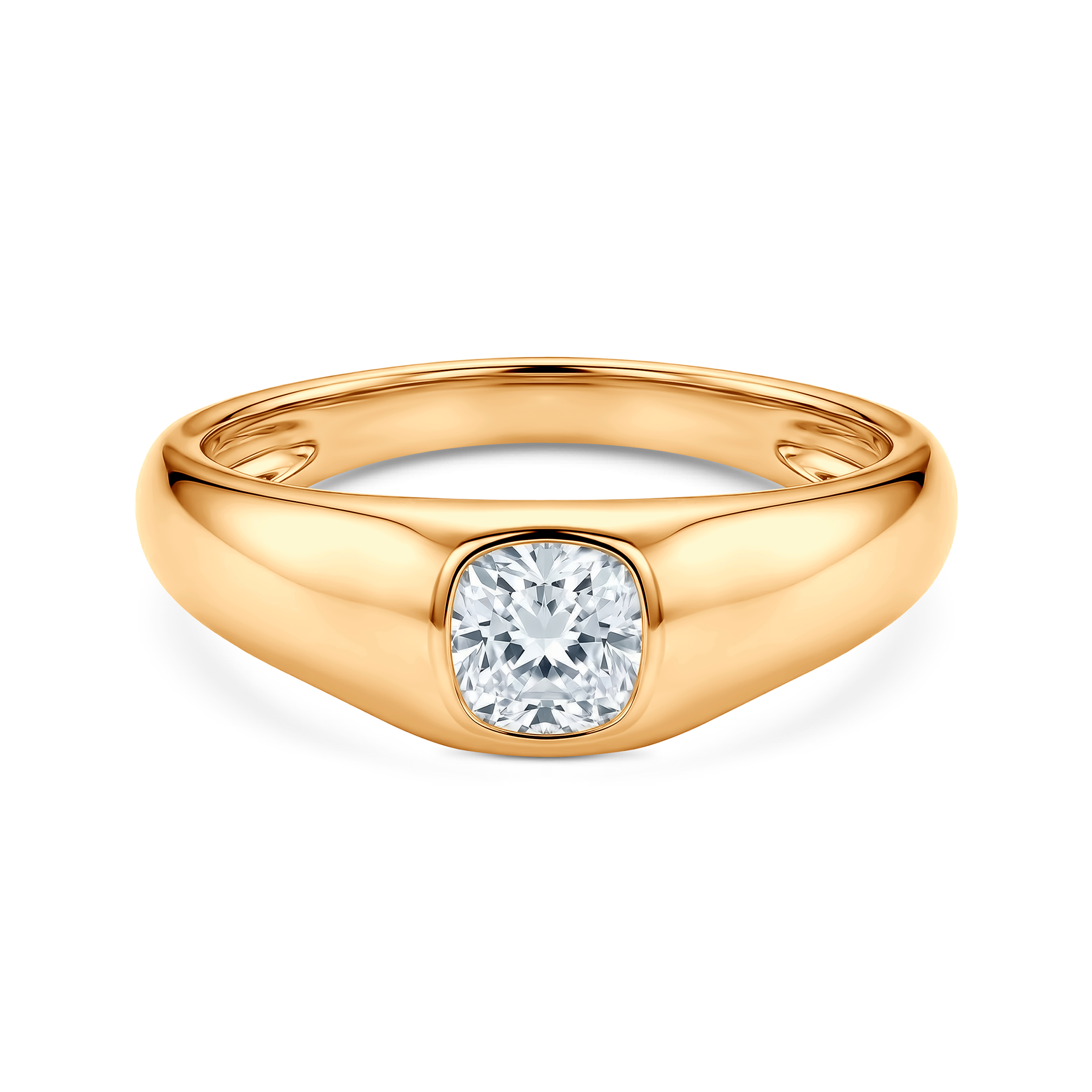 Sygnet Savicki z diamentem laboratoryjnym w szlifie poduszkowym o masie 0,5ct VS/F, wykonany ze złota (próba 0,585).