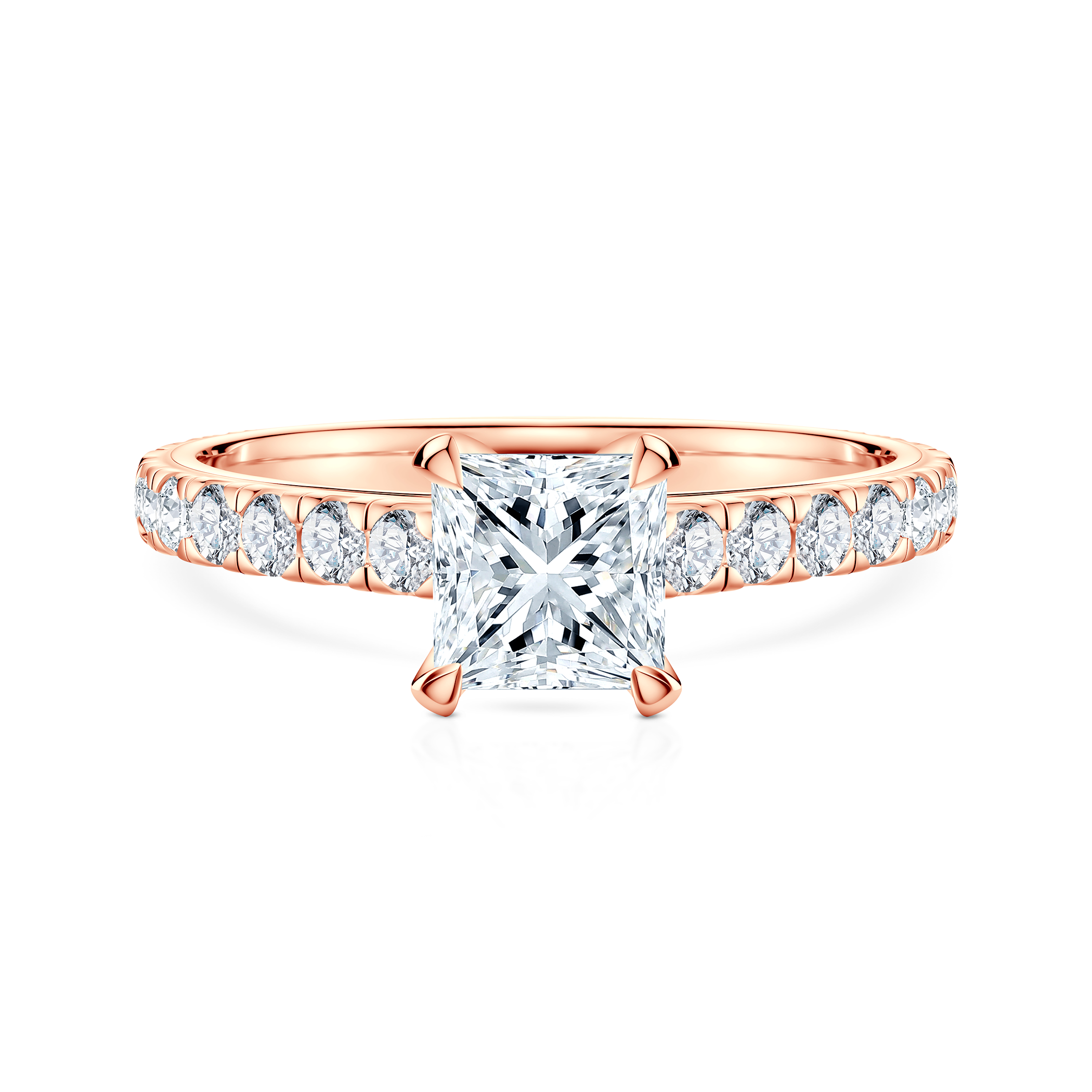 Pierścionek zaręczynowy z centralnie umieszczonym diamentem o masie 0,5 ct wysokiej czystości SI2/H, o szlifie serce. Wykonany z 14-karatowego różowego złota (próba 0,585).