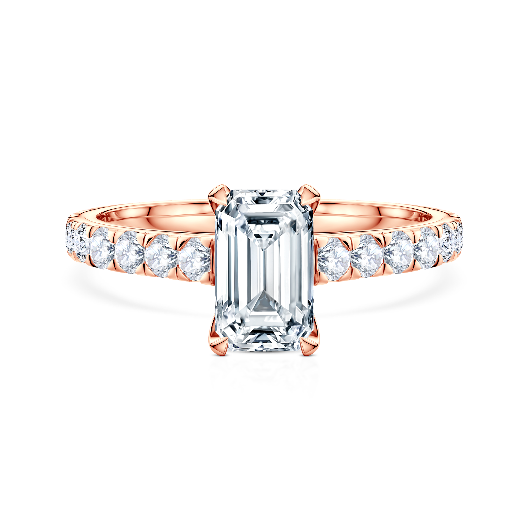 Pierścionek zaręczynowy z centralnie umieszczonym diamentem o masie 0,5 ct wysokiej czystości SI2/H, o szlifie serce. Wykonany z 14-karatowego różowego złota (próba 0,585).